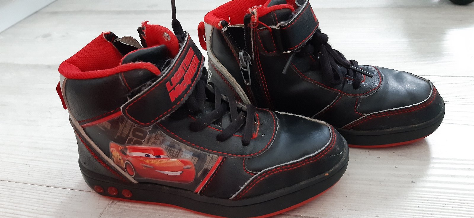 Predám členkové tenisky č. 28, zn. Cars McQueen v nosenom stave, vhodné na donosenie okolo domu. Bez poškodení. Zapínanie na suchý zips a zips zboku.