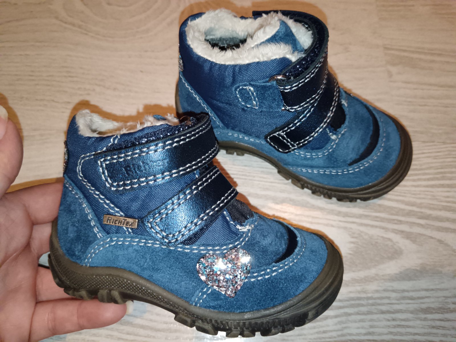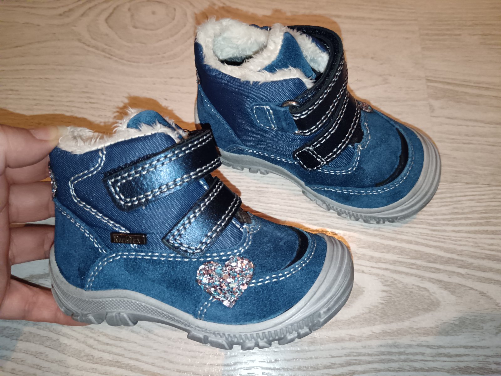 Kožené nepremokavé zateplené topánky veľ. 20 zn. Richter, zapínanie na suchý zips, pohodlné, krásne šitie aj detaily, stielka 13cm, protišmyková podrážka. Odporúčam.