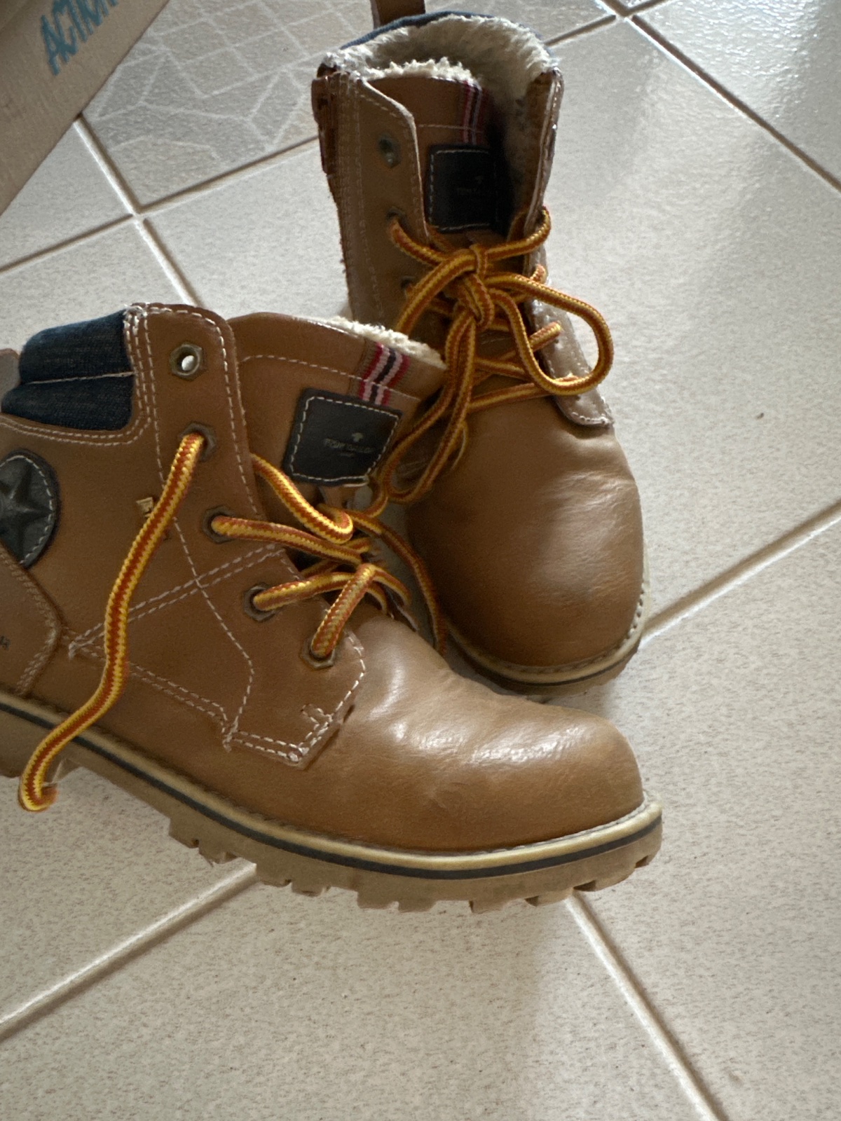 Predám čižmy značky Tom Tailor, veľkosť 33, pravá čizma na špičke viď foto, zohľadnené v cene, veľmi dobre riešené šnúrky+zips z boku,,cena je uvedená bez poštovného