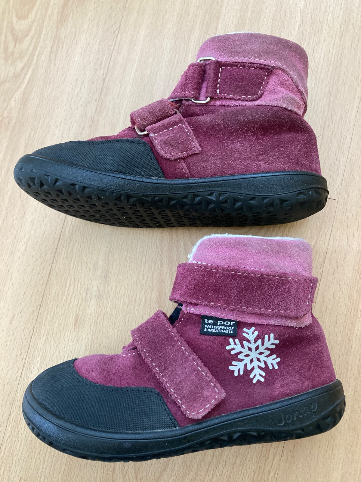 Zimne barfoot topanky v krasnom stave, nosene len mojou dcerou. Zateplene ovcou vlnou, nepremokave, kozene, makke, lahke. Suche zipsy drzia dobre