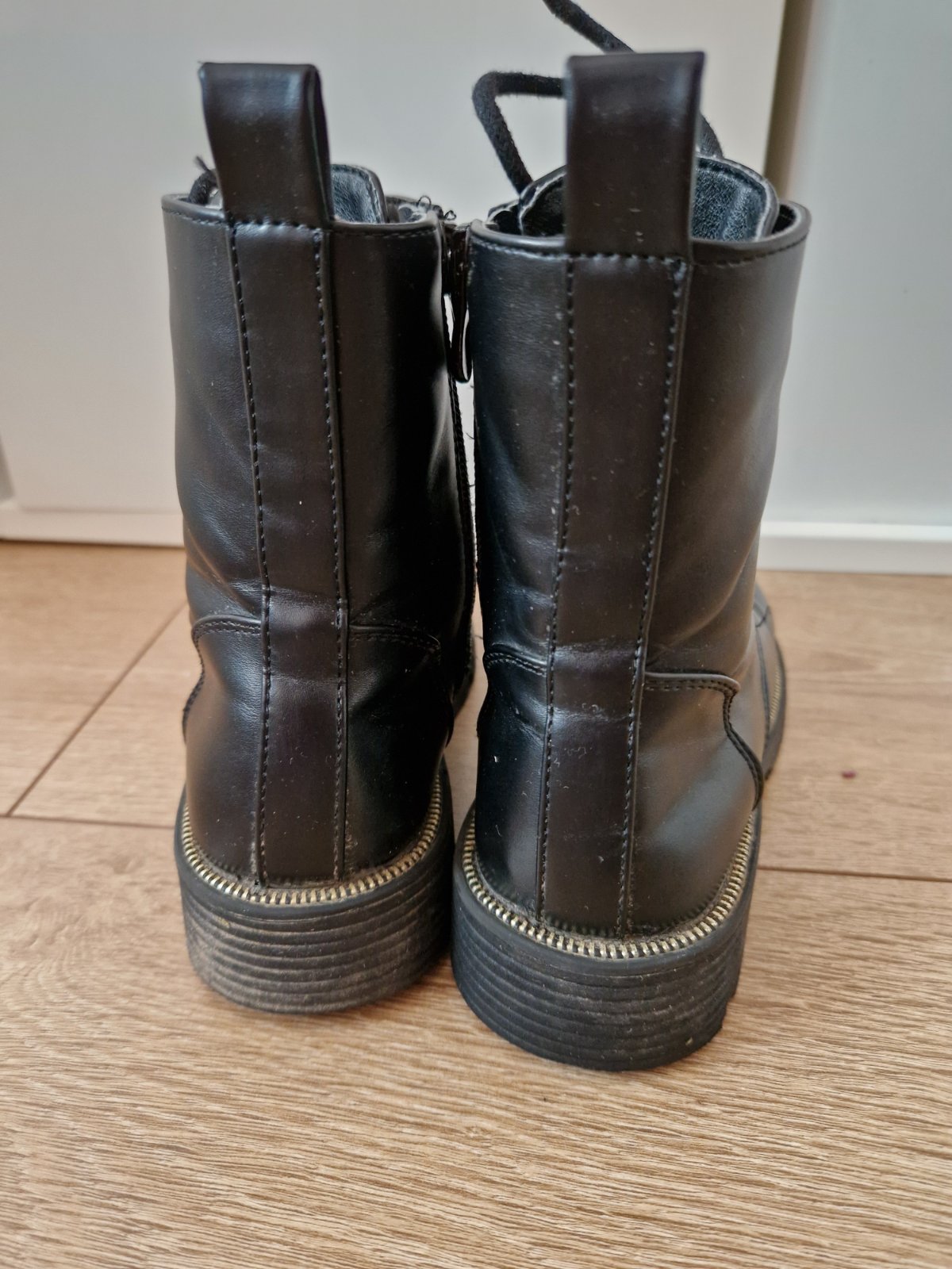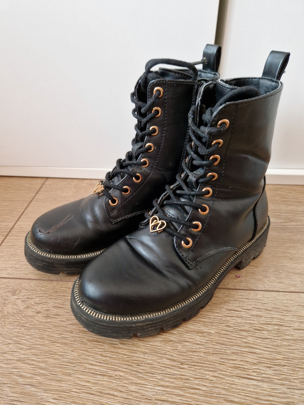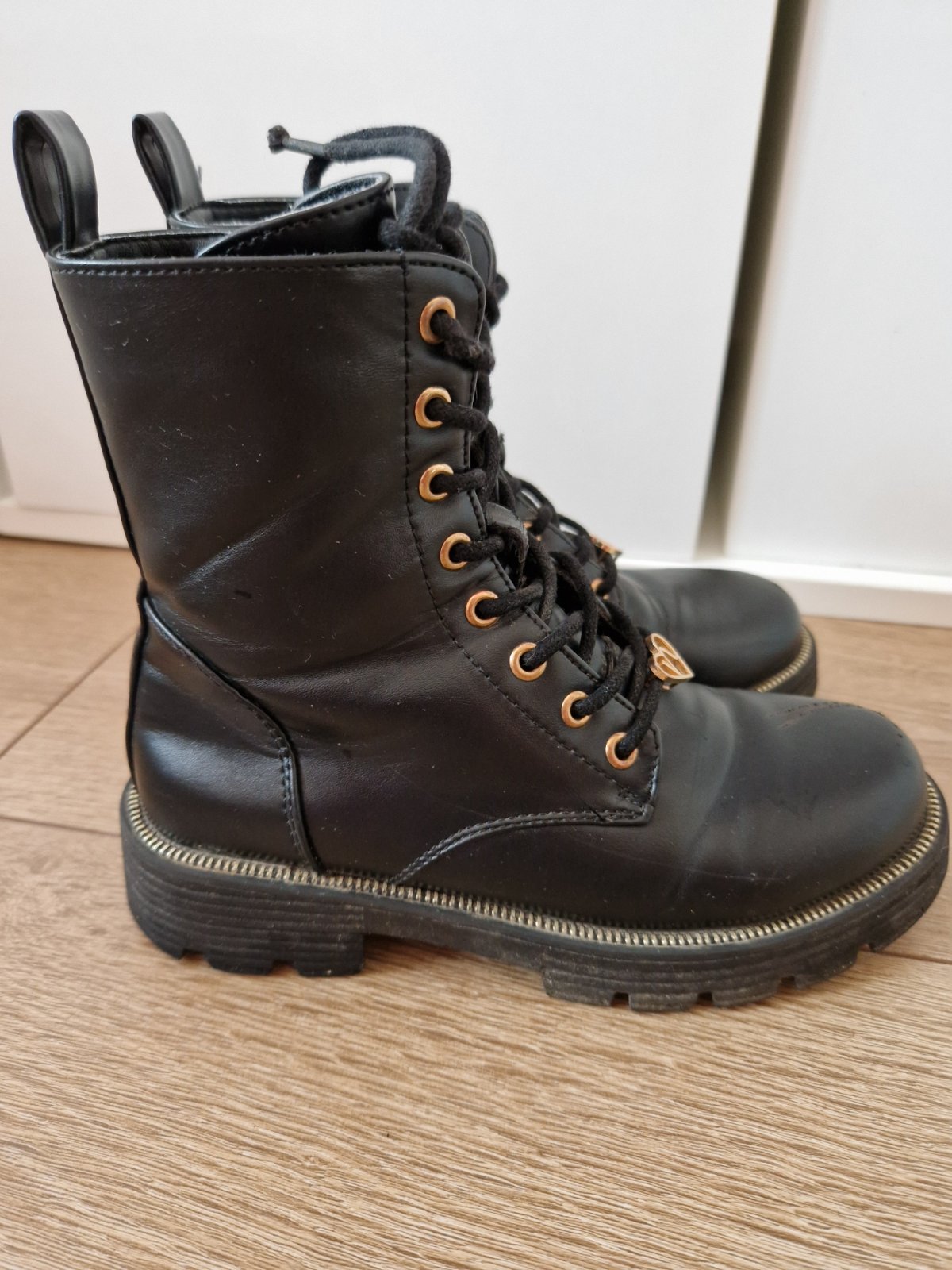 Dievčenské čižmy čiernej farby, zapínanie na boku na zips. Z vnútra mierne zateplené. Bez poškodení, vzhľad zodpovedá noseniu počas jednej sezóny. Vnútorná dĺžka 20,5 cm.
