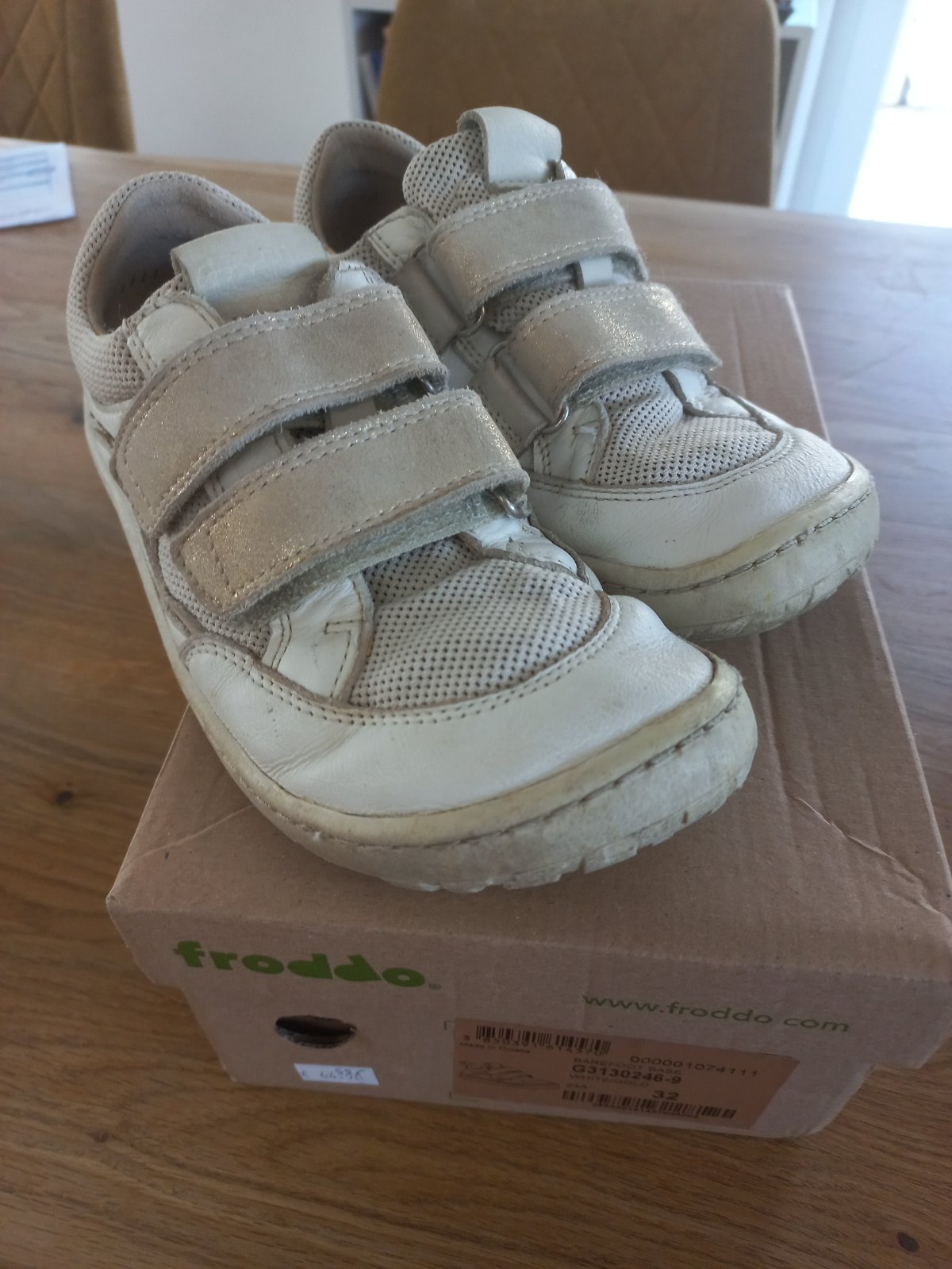Barefoot tenisky Froddo Base s jemne trblietavymi castami, velkost 32 (21.4x7.8cm), pekny noseny stav bez poskodenia. Kupovane pouzivane, nam nesedela velkost.