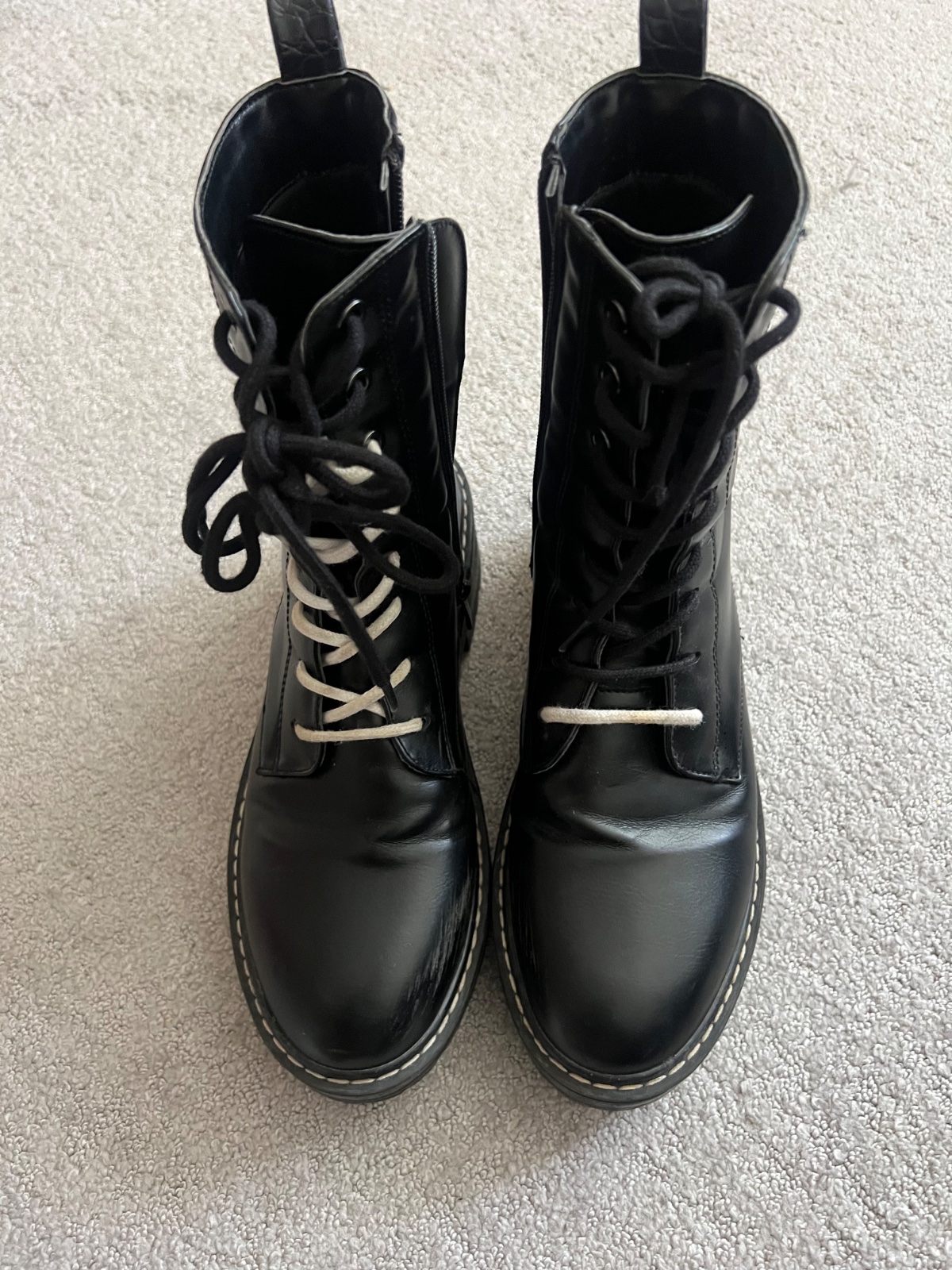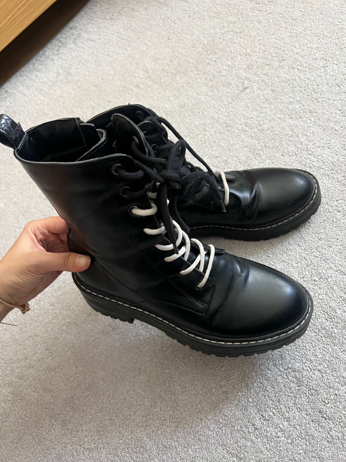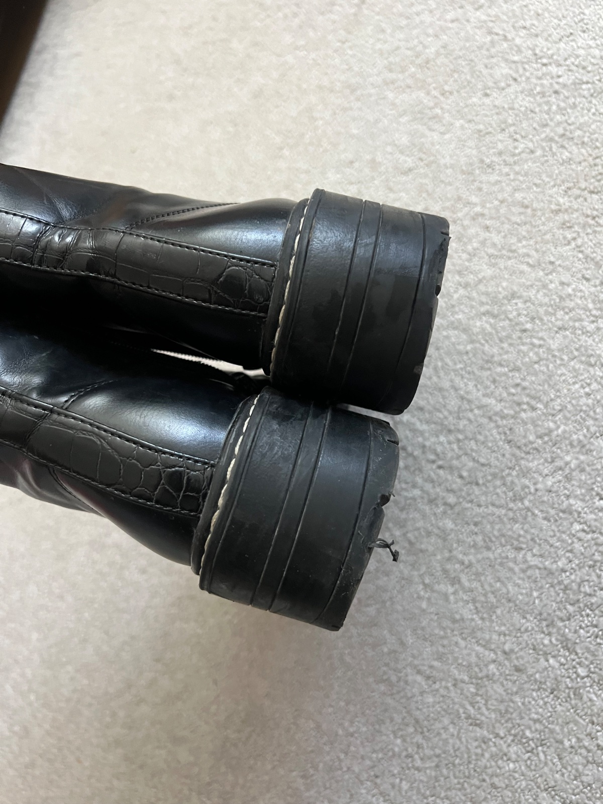 100% stav! Brusena koža, kúpila som ich nové za 70 EUR v stradivariuse. No po hodinke skušania v práci som zistila že nemôžem nosiť, tlačia ma, mam nohu 38 a pol, na 38 by sedeli. Škoda lebo su nád...