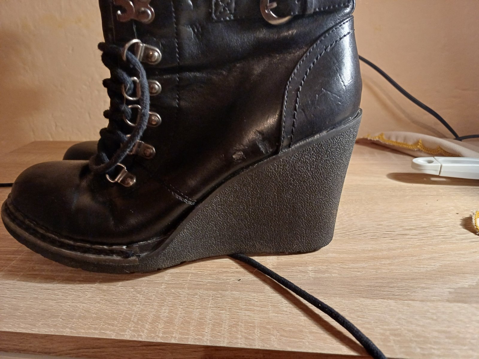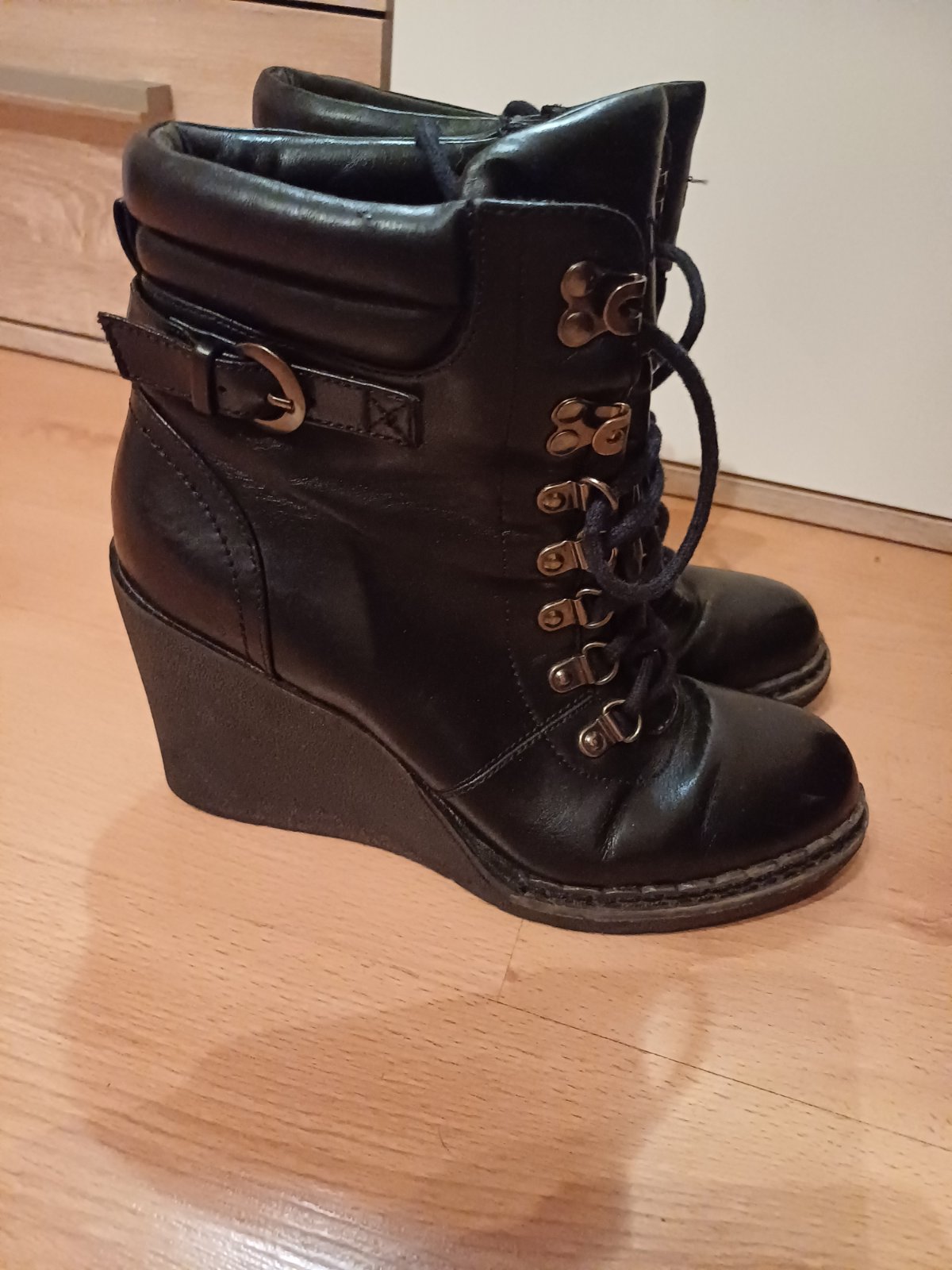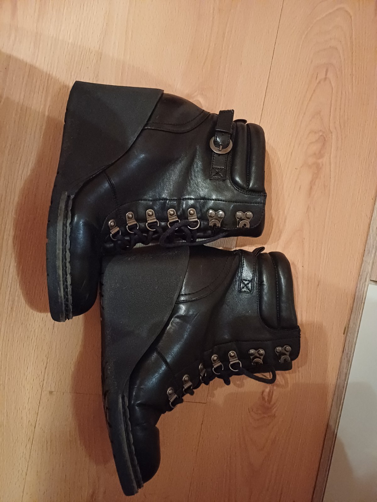 Predám dámske zimné topánky v.39, dobre sedia na túto veľ., platforma je vysoká 9cm. Na ľavej topánke je veľmi malý škrabanec, je možné ho zazrieť fixkou, sú krátko nosené. Platba vopred na účet.