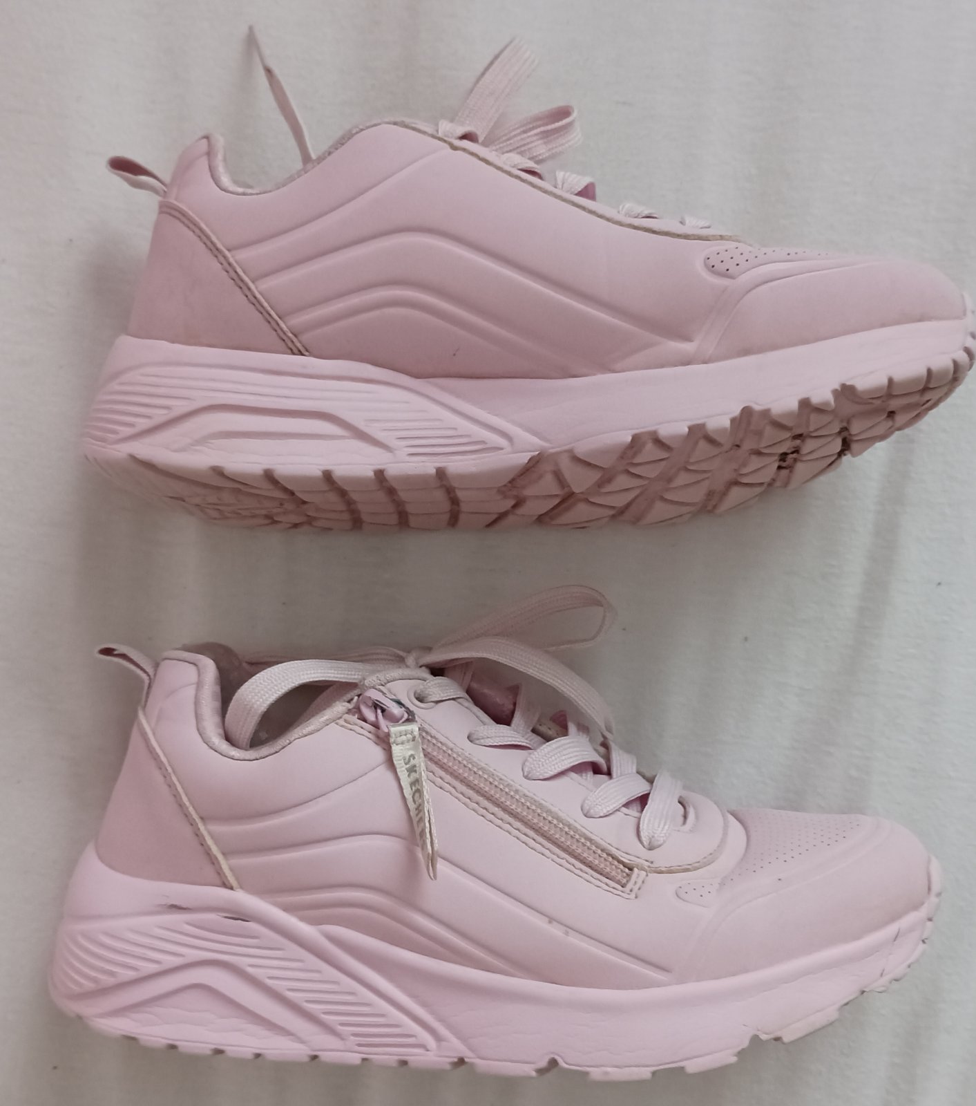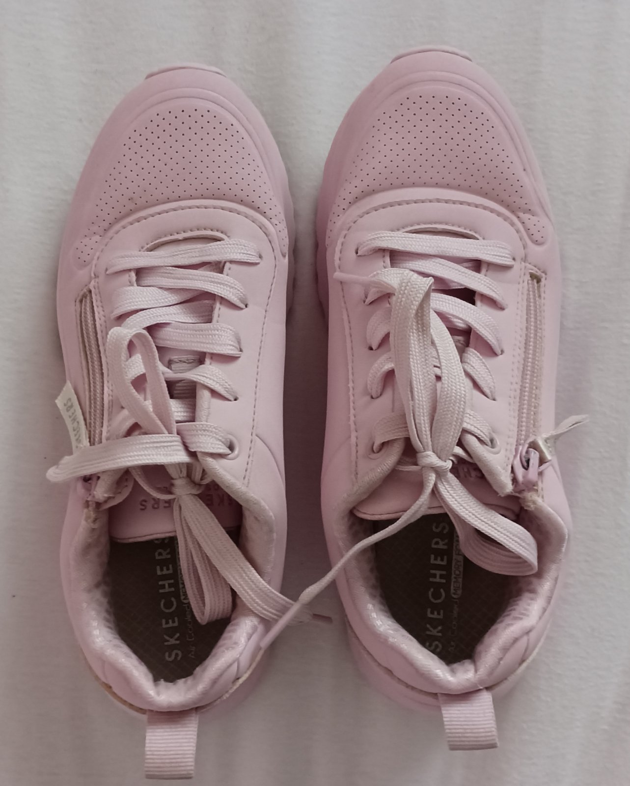 Krásne tenisky, ešte pohodlnejšie na nosenie. Dcéra ich mala rada. Sú pohodlné a hlavne ozaj ľahké. Perfektné na obuvanie kvôli zipsu. Vnútri jemne sfarbené od nosenia, nie je možné tomu zabrániť. Bez poškodenia.