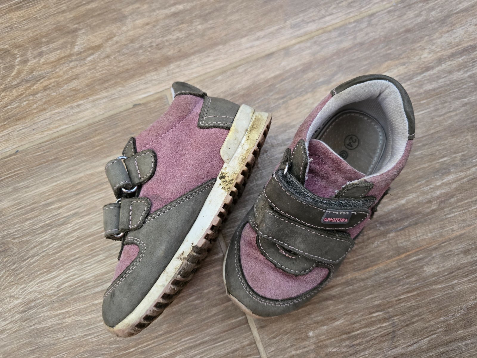 Predam topanky zn. Protetika c.24 nosene len mojou dcerou. Dobry noseny stav. Na pravej pate trochu osuchnute. Nieje pri chôdzi velmi vidno. VD 15,5cm