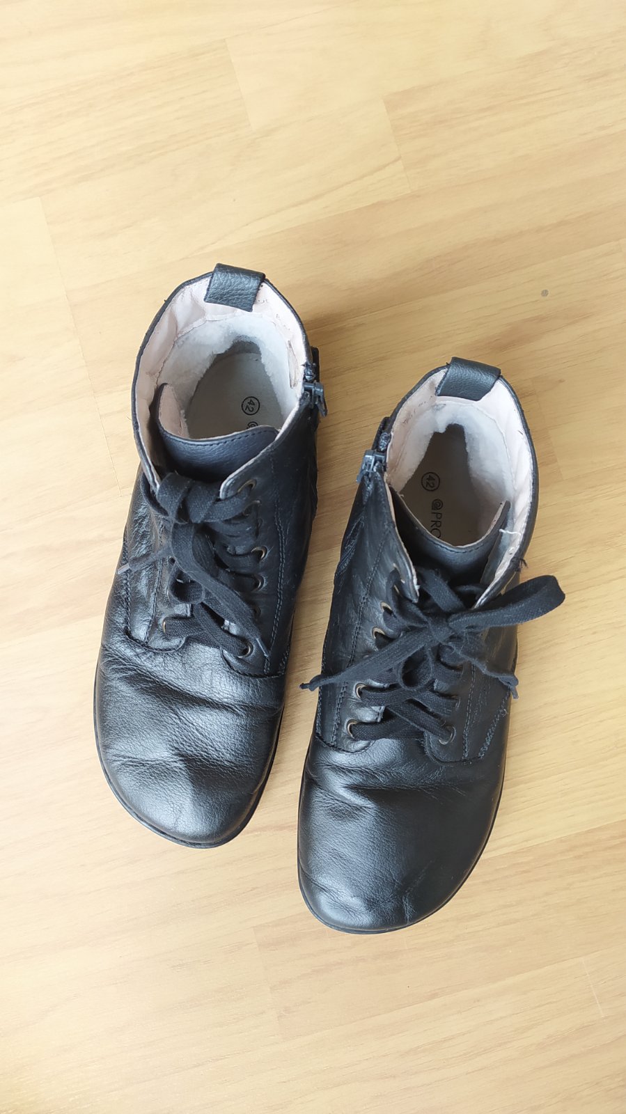 Zimné barefoot topánky od Protetiky. Nosené dve zimy, na streidačku s inými, stav podrážky je viditeľný na fotkách. Originál vložka nosená len prák krát. Škrabanec veľkosti 1 cm na ľavej päte, je na foto. Pôvodná cena 110€