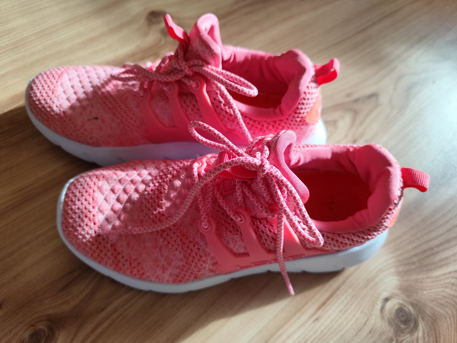 tenisky su velmi dobrom stave. farba neonovo oranzova. jedna snurka je rozstrapkana. pri kupe 2 a viac veci hradim obyc. postovne ja.