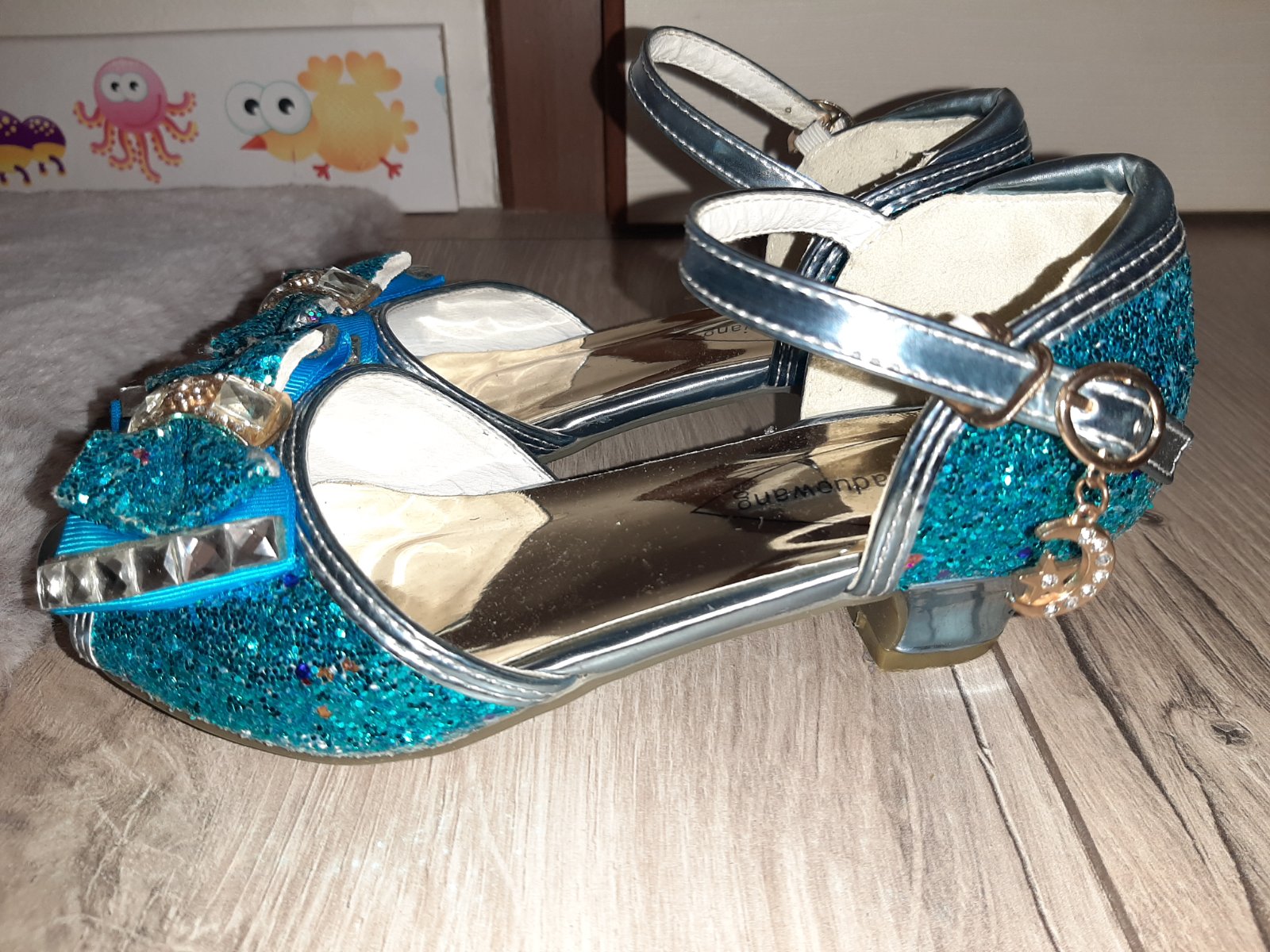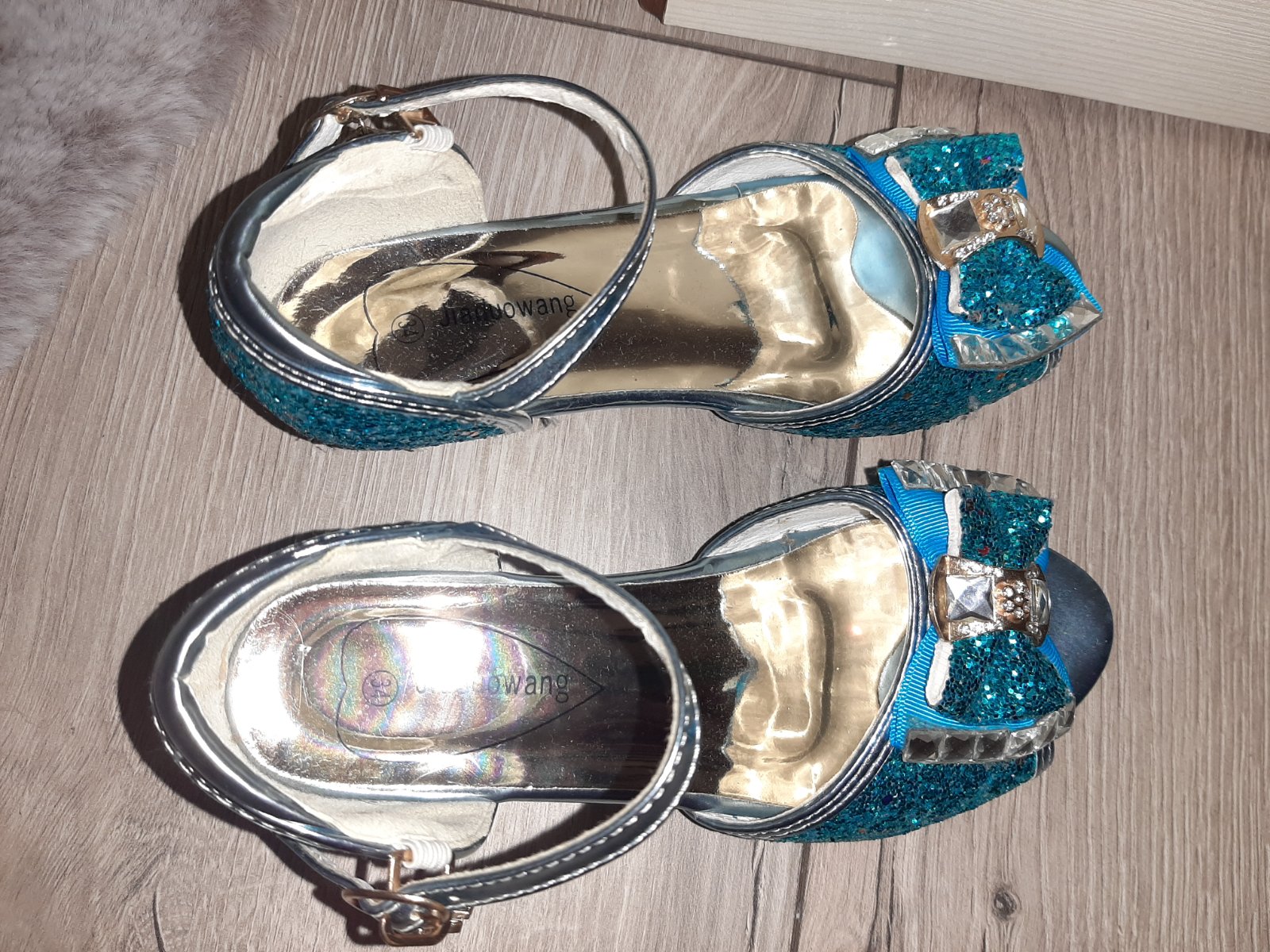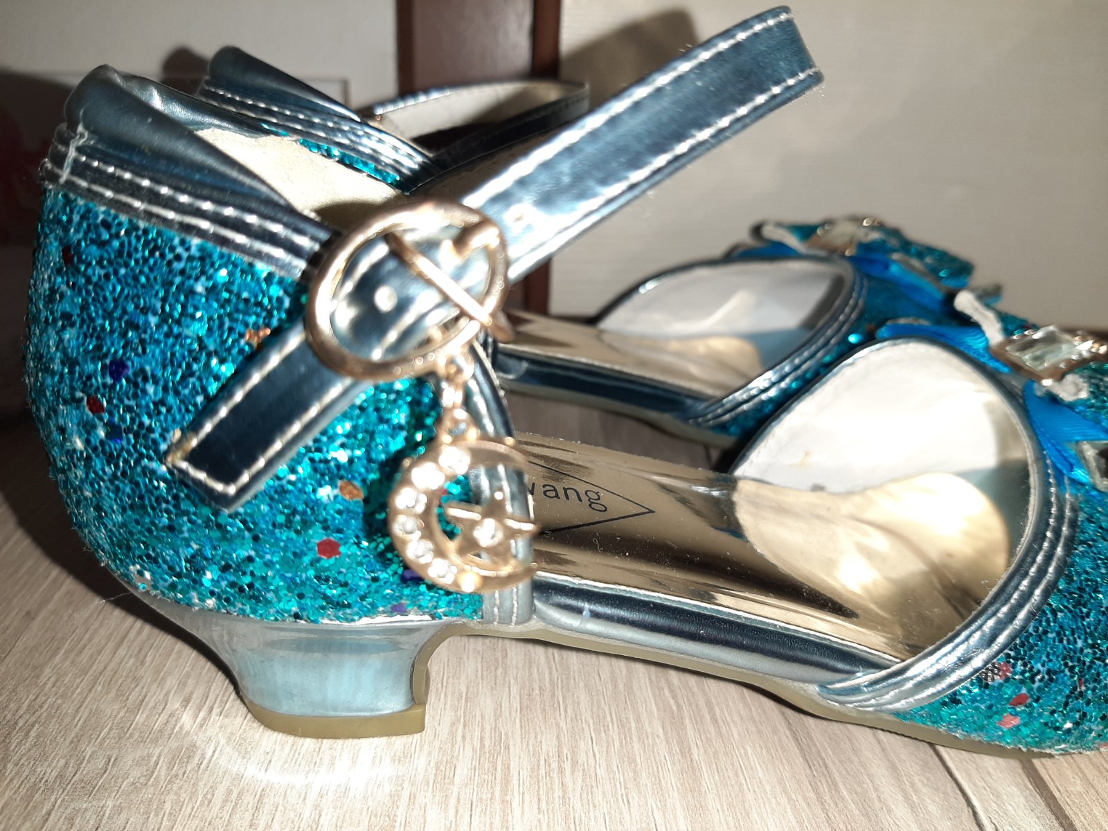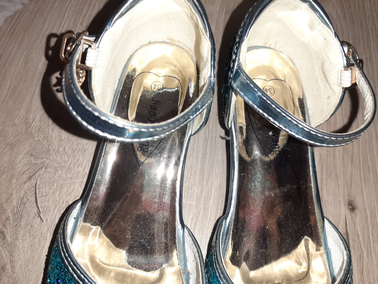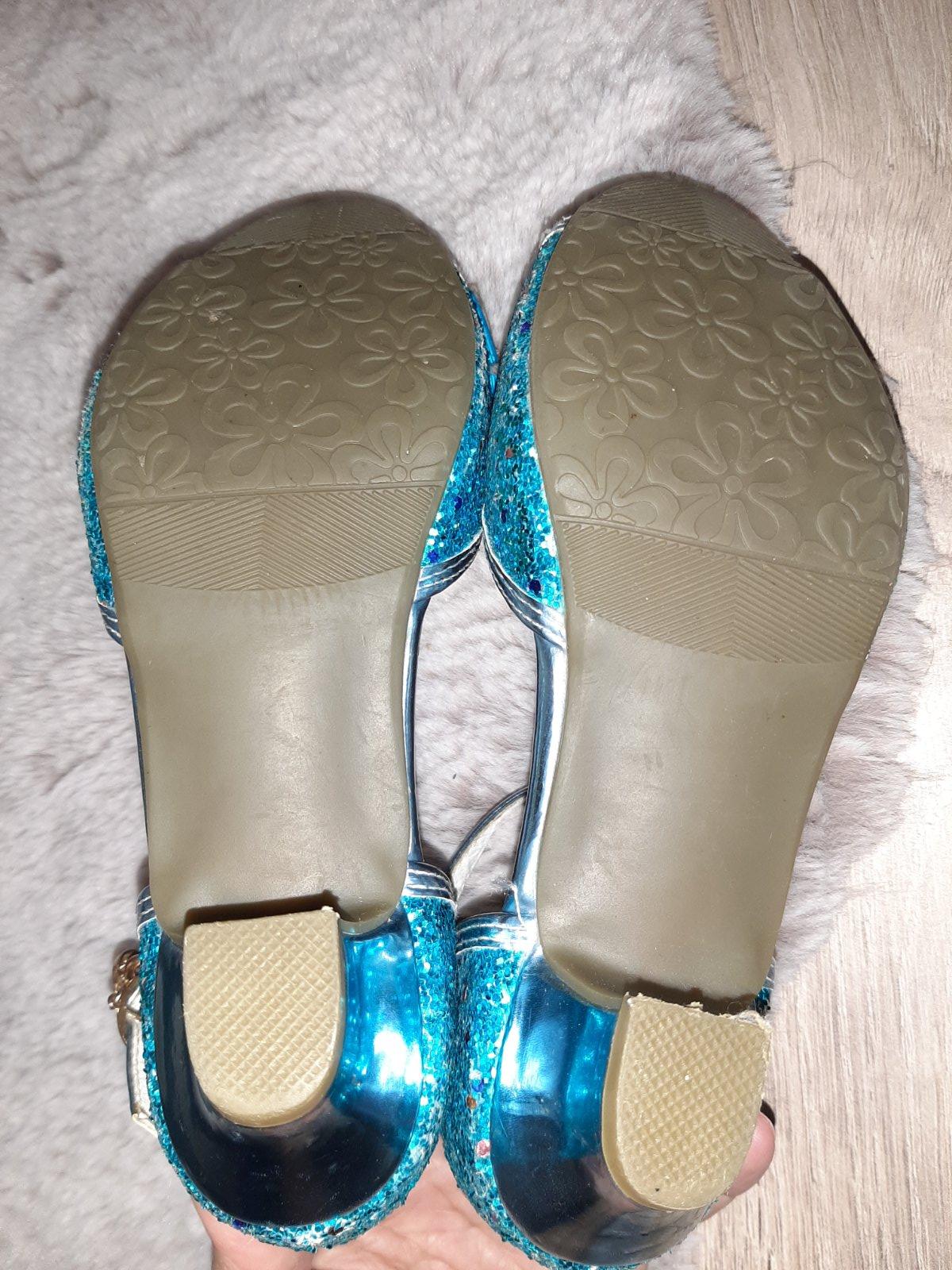 Krásne, absolútny top stav. Vnútorná dĺžka 21 cm, celková. Vhodné na oslavu alebo karneval, ku kostýmu Frozen. Rýchlo zapínanie, ako u tanečných topánok. ❄️🥿