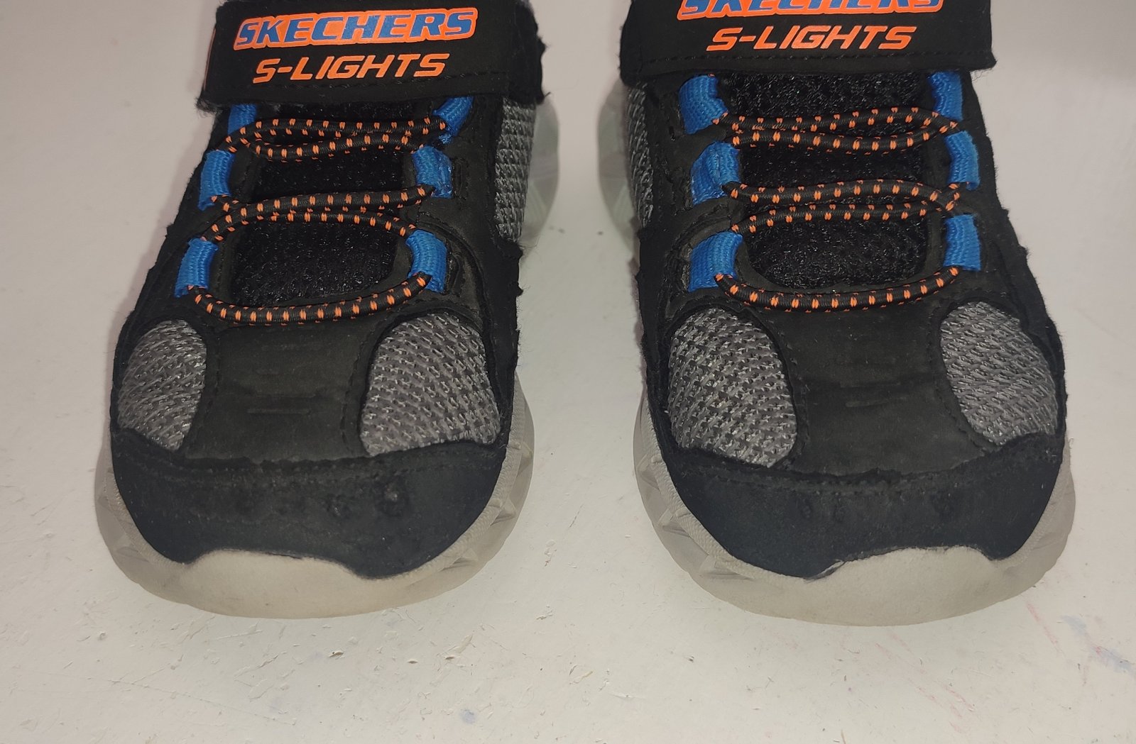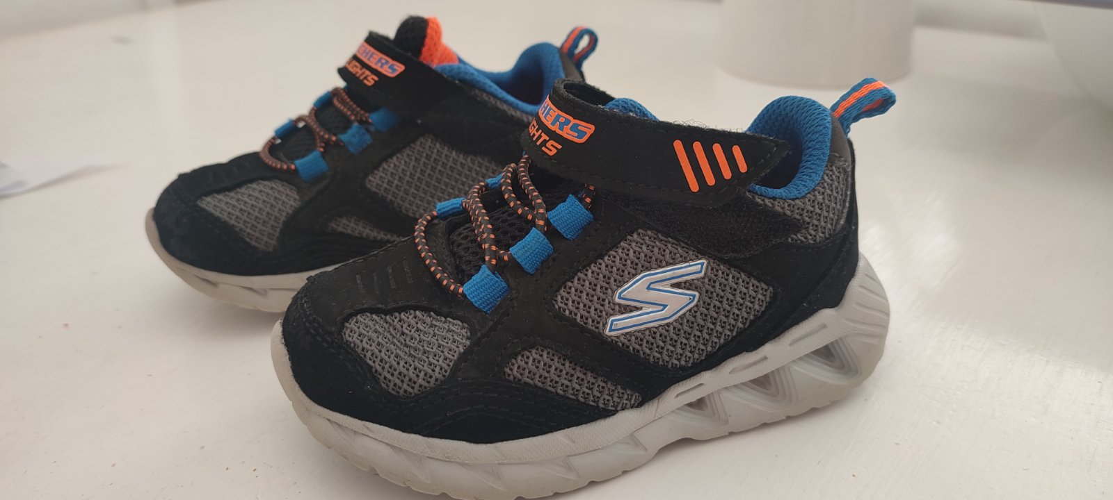 Ponúkam ľahké letné tenisky Skechers, pri došľape zasvietia. Tenisky sú v peknom nosenom stave, jediná chybička sú trochu okopané špičky. Keďže je to v čiernej farbe, nie je to veľmi vidieť. Sú neschodené, zapínanie je na suchý zips. Rozmery sú zachytené na fotografiách.