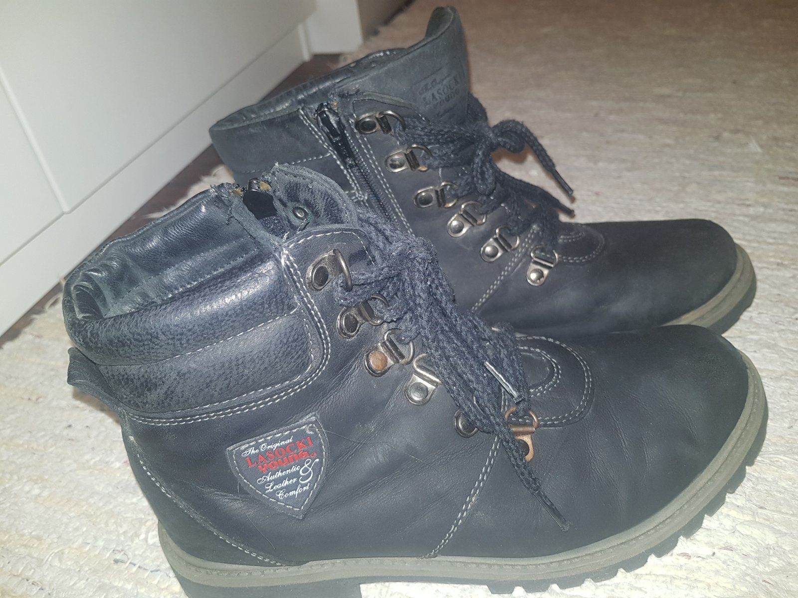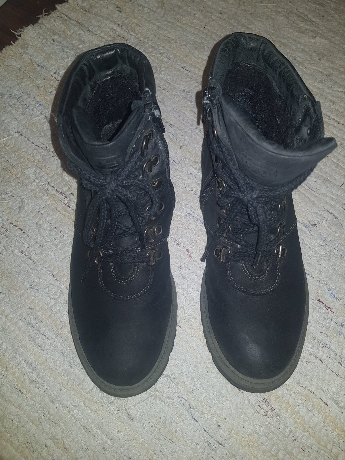 Pekný nosený stav, bezne znamky nosenia, ziadne vady, nosene max 2 sezony. Maju zips z vnútornej strany topánky, tym sa velmi ľahko a rychlo obuvaju. Su zateplene kožušinkou vo vnútri aj na stielke. Vnutorna dĺžka cca 23cm.