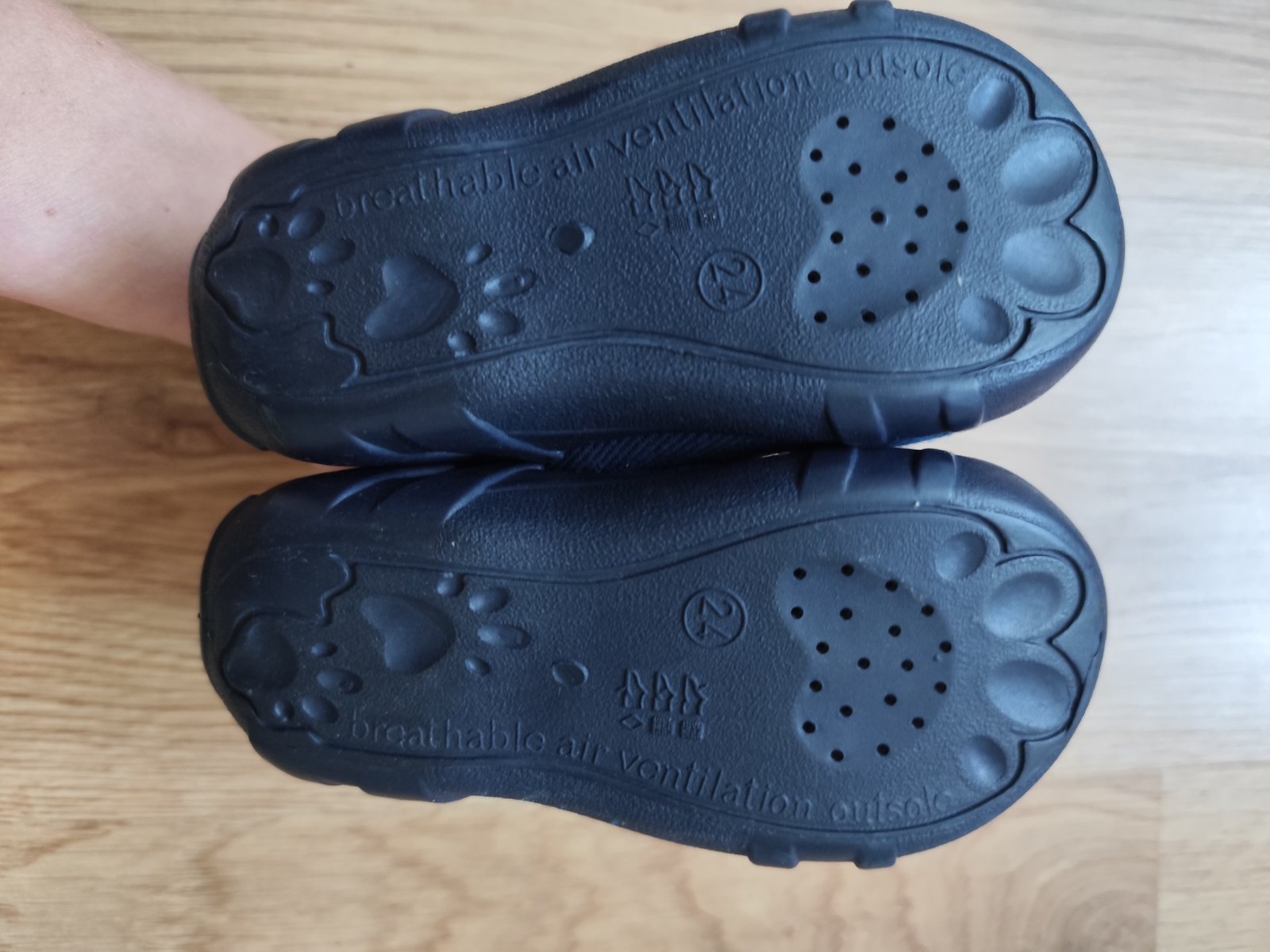 Krásne papučky vo veľmi dobrom stave, nosené len doma (možno ich nosiť aj na von ako plátenky). Na prackách, ako sa zapínajú papučky, je troška zošúchaná farba, je vidno aj na foto.