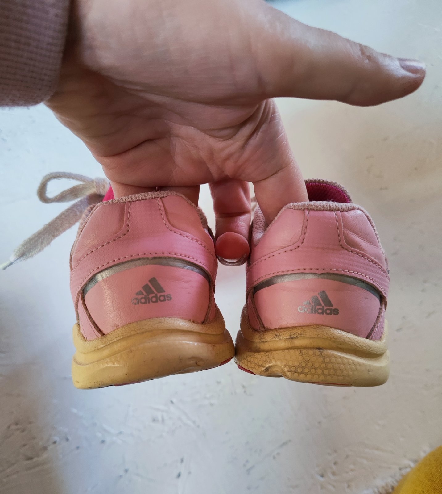 Posuvam botasky na donesie na dvor . na boku na botaske je visuchane a na predu je prasknute