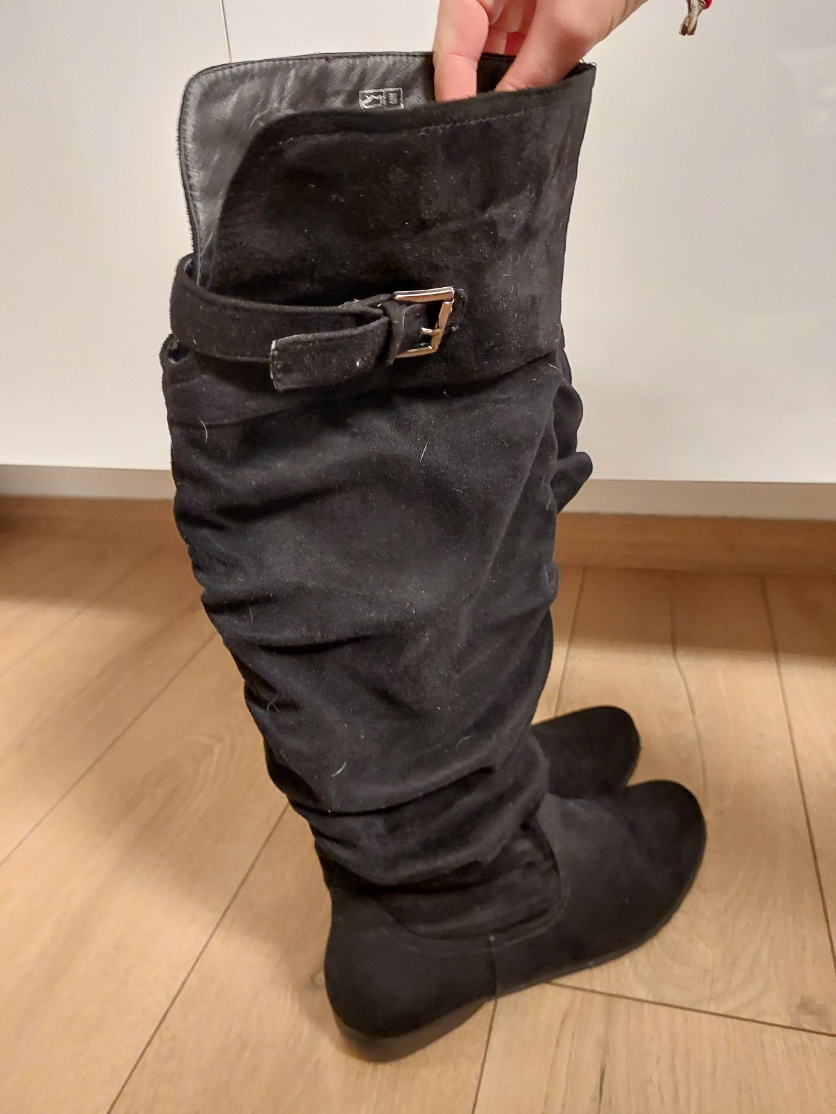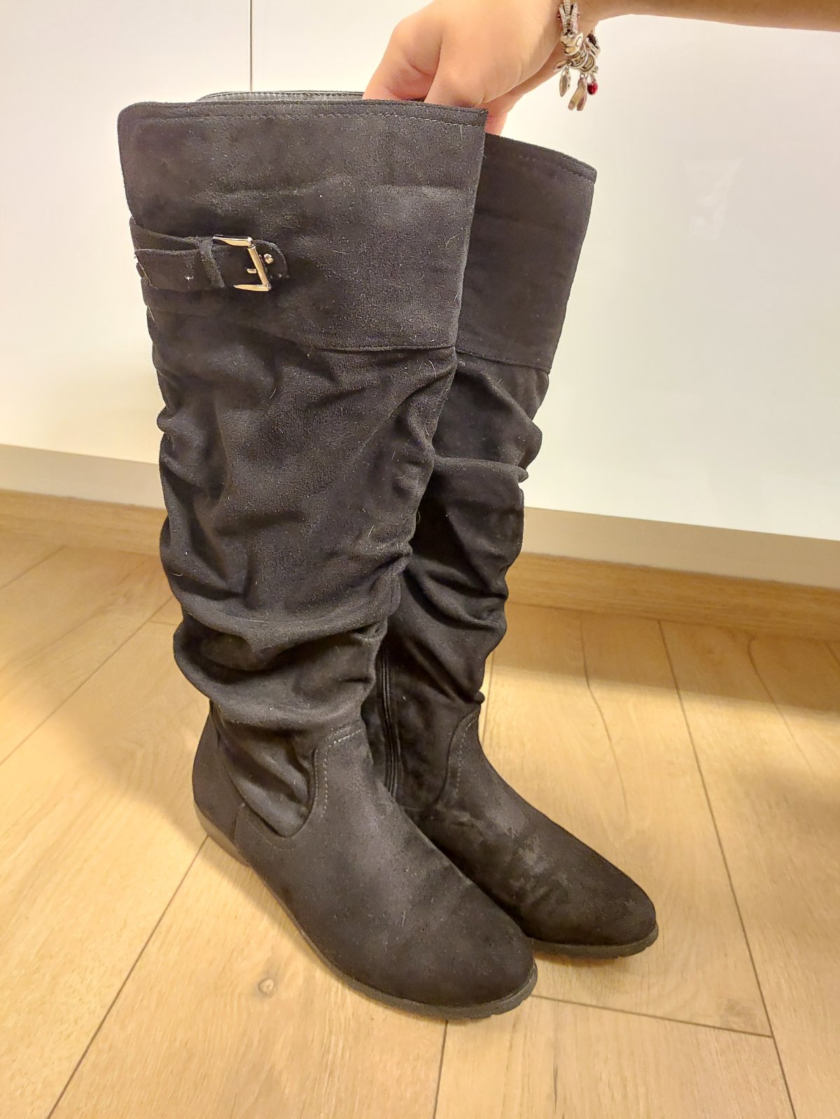Pekné semišová vysoké čižmy v dobram stave,obuté možno 5 krát.Zapinanie na zips .Na foto vyzerajú