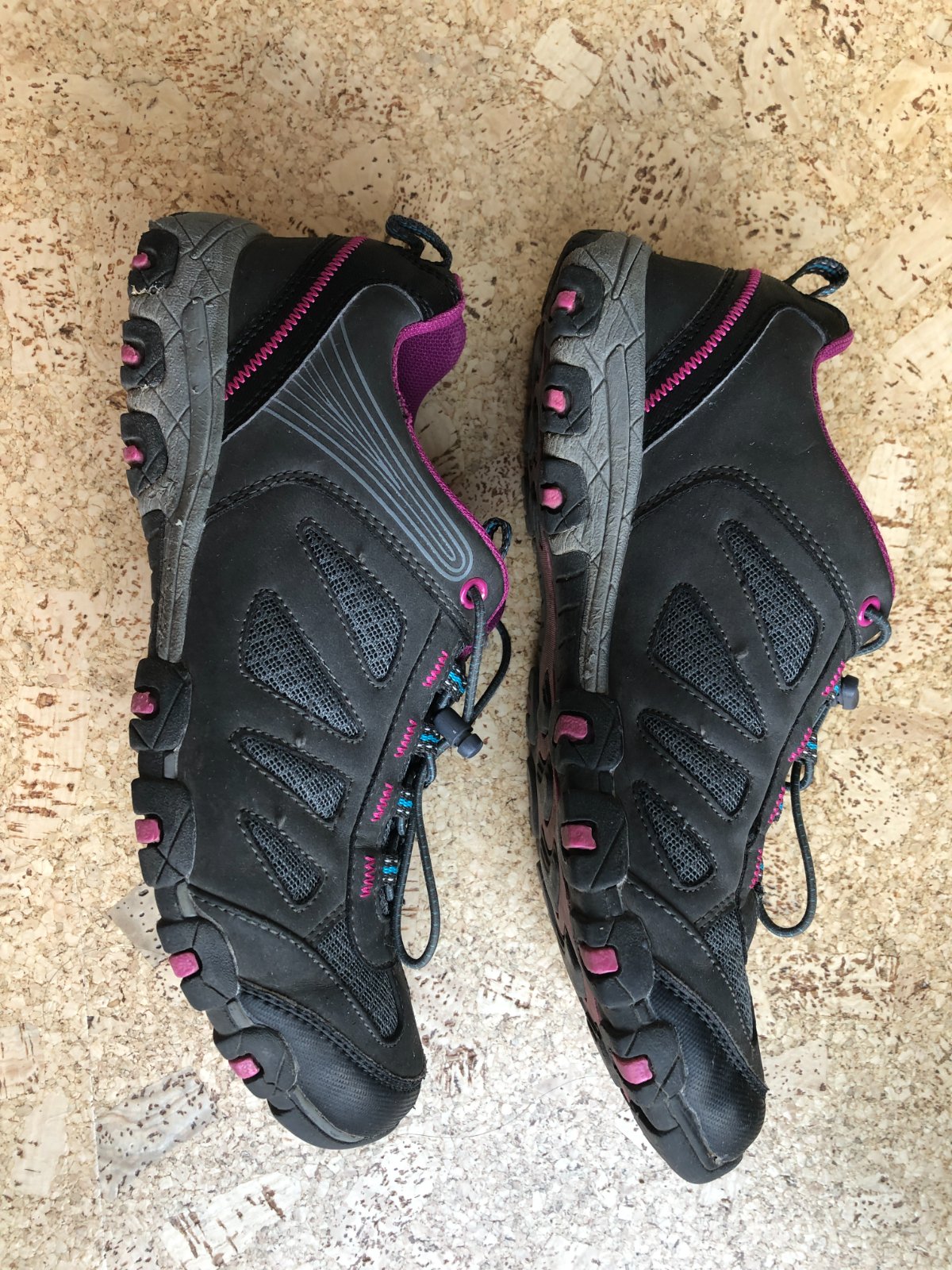 nosené, stav podľa foto, šitia sú v poriadku, na podrážke sú odpadnuté niektoré ružové kúsky, gumičky ešte funkčné, dôvod predaja: prechod na barefoot