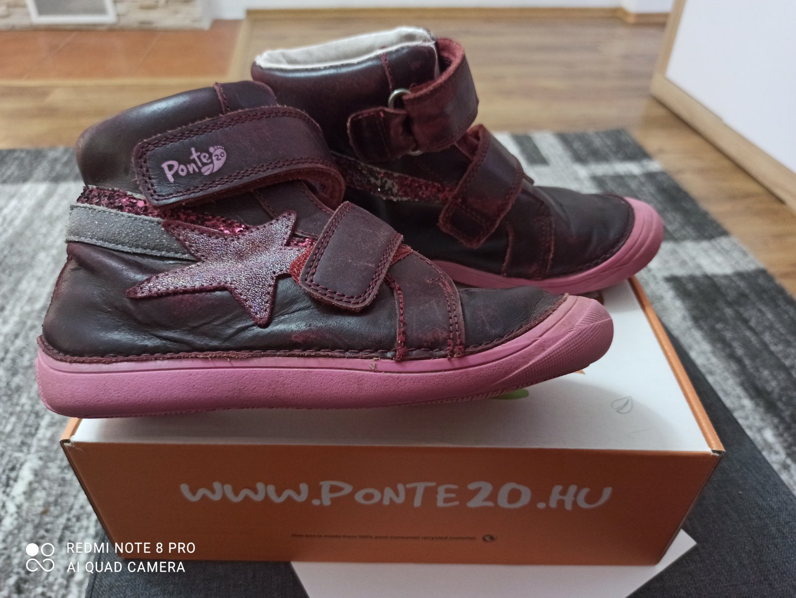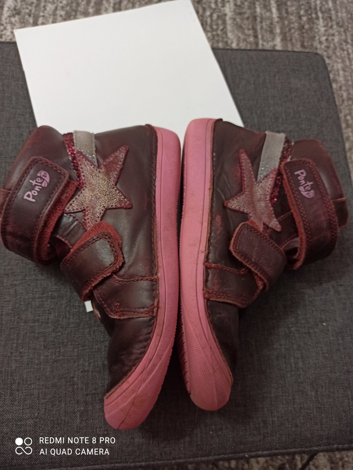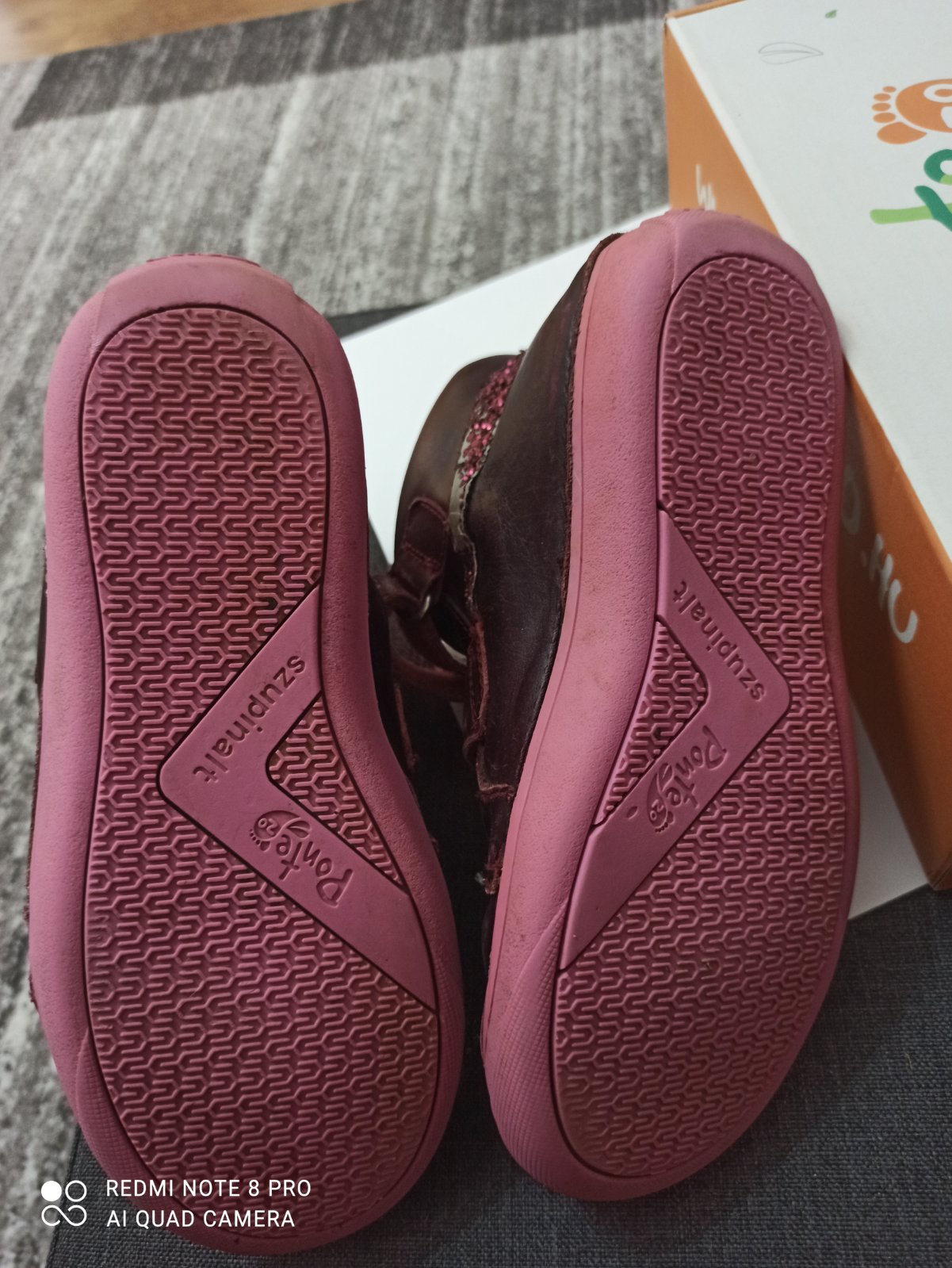 Predám prechodné jesenné topánky, je to barefoot značka Ponte (sestra značky DD Step). Podrážka je úplne ohybná, mäkká, päta je trošku pevnejšia, tak asi skôr alternatíva barefoot. Vnútorná dĺžka 20 CM. Sú kožené, nie sú schodené ani zničené, len mierne suchnute tie trblietky na ozdobnom pásiku. Suche zipsy držia. Mierne trošku ošúchaná koža na tých zapínacích pásikoch ale nie popraskané ani poškodené.