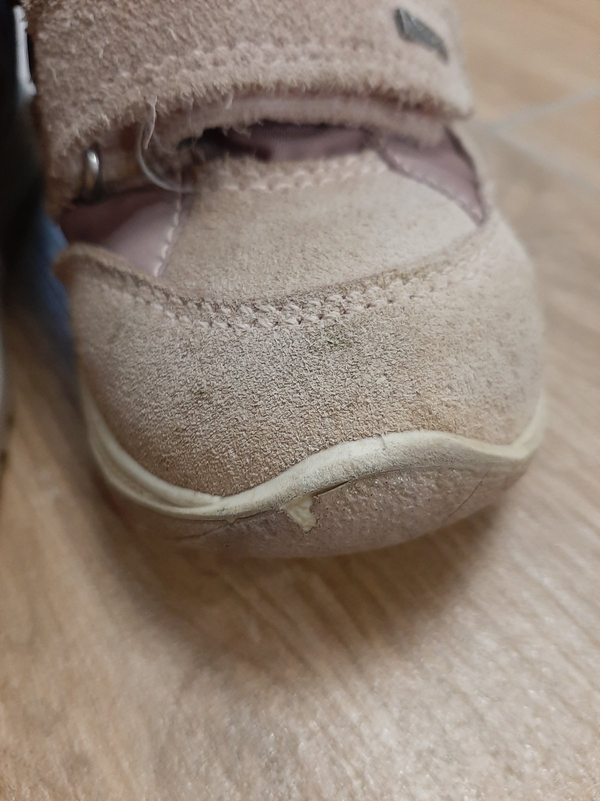 Málinko odlupnuté z podrážky vpredu na ľavej topánočke
