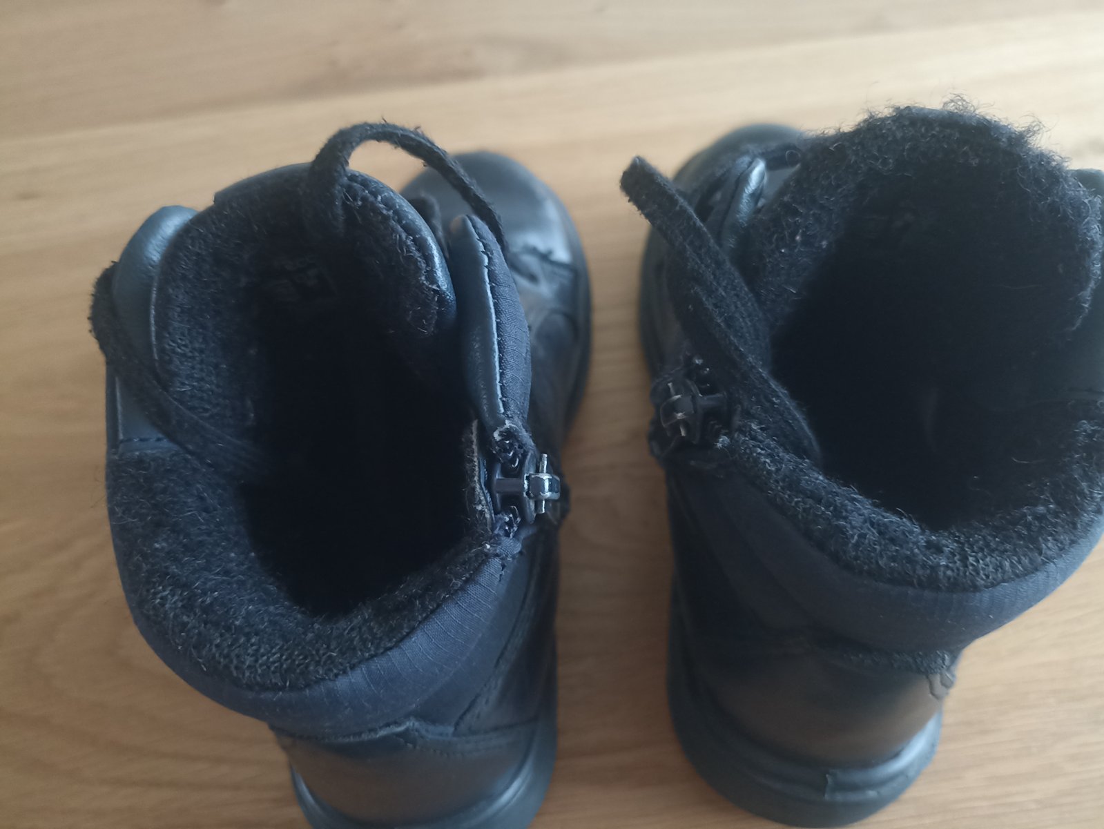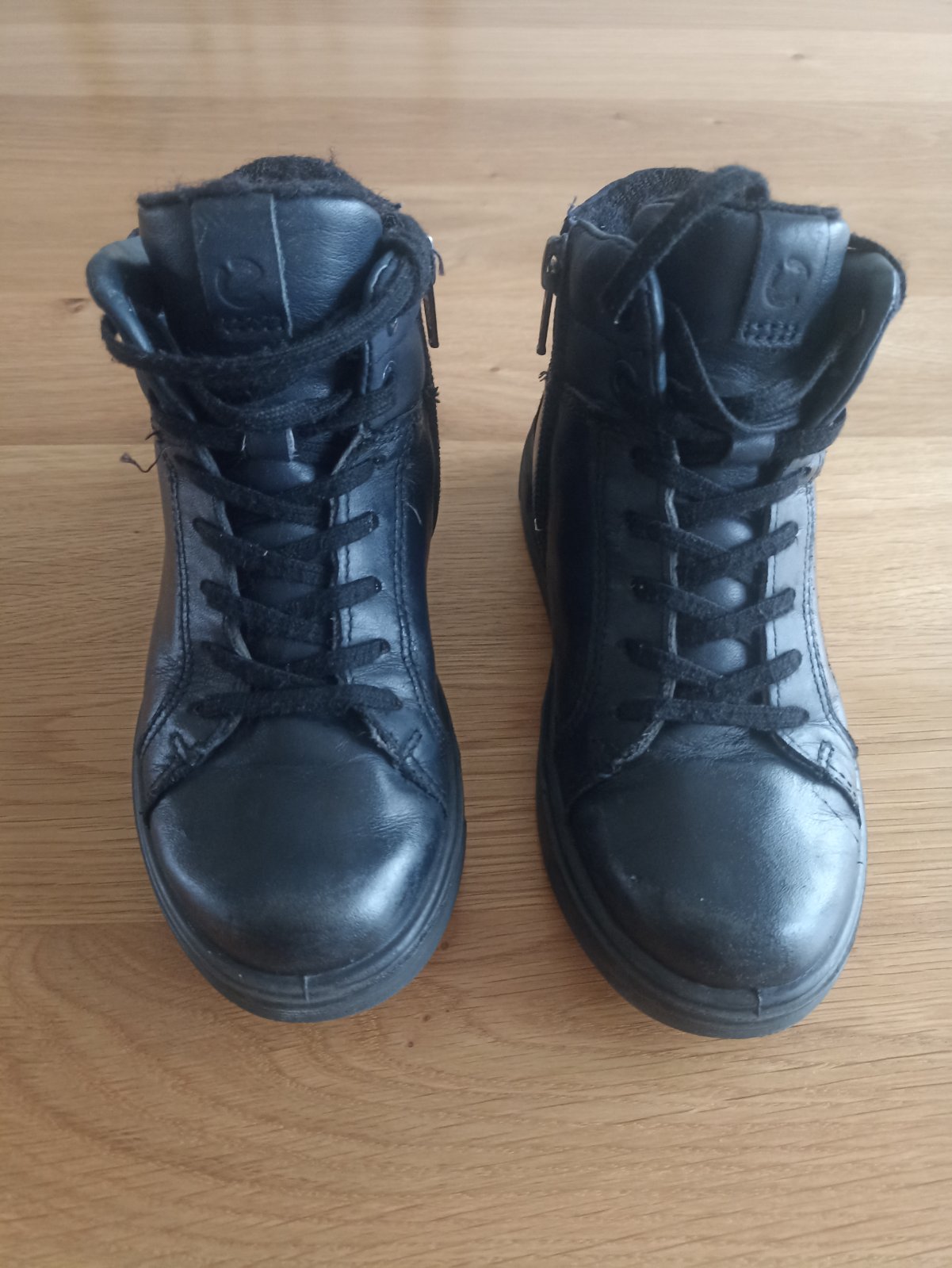 Zateplené (nie úplne hrubou kožušinou) topánky, veľkosť 28, značka ECCO. Vpredu na špičkách mierna zmena farby, je to na fotkách, viditeľné zblízka, zohľadnené v cene.