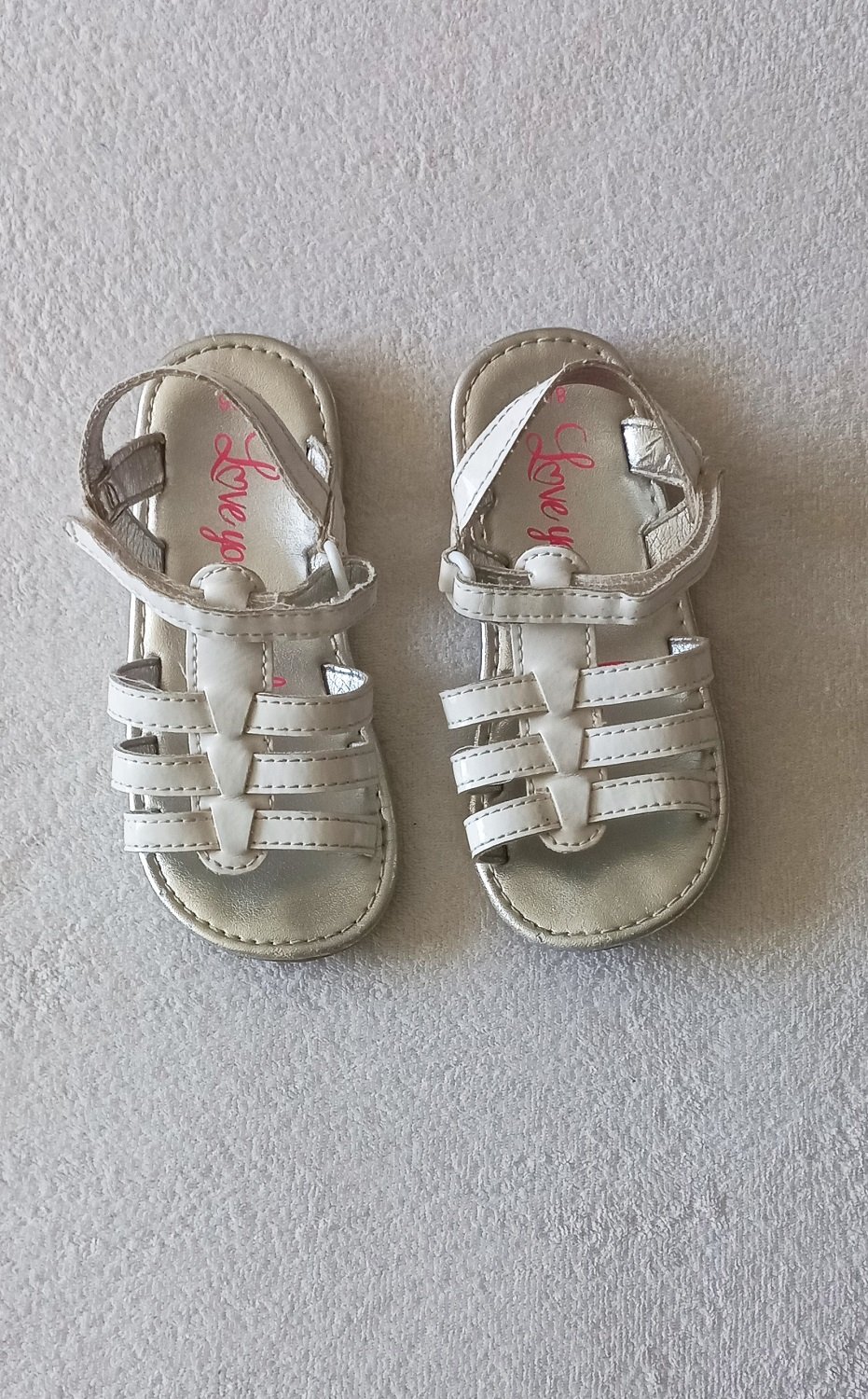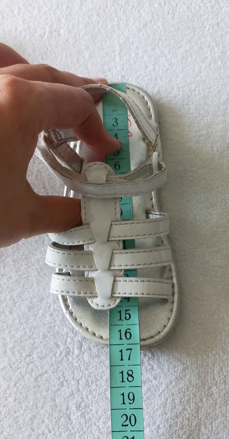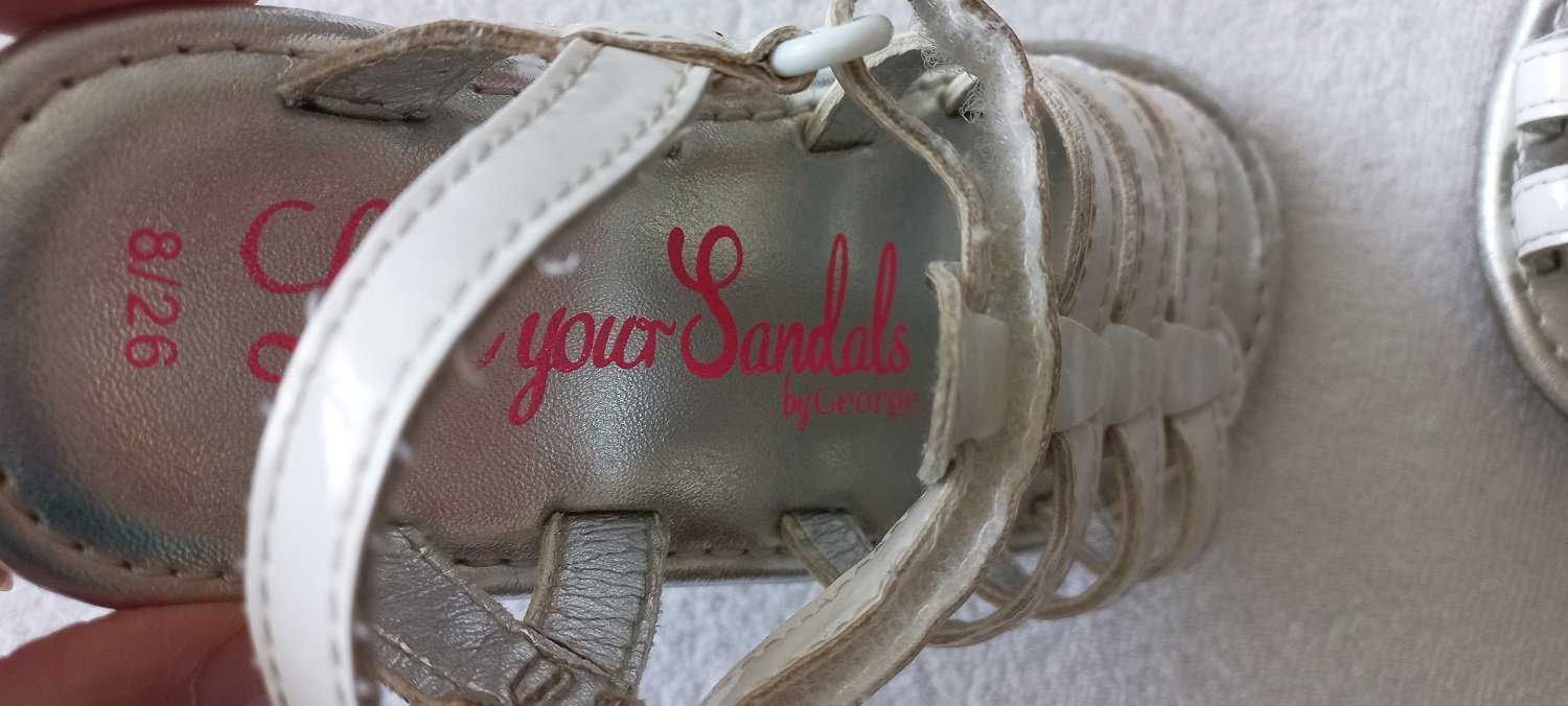 Biele sandále, veľkosť písaná 26, ale sú menšie, VD 15,5 cm, značka George. Asi dvakrát obuté, nepoškodené, top stav. Máme viacero detských vecí, môžete si zostaviť vlastný balíček. Pri kúpe viac vecí sa rada dohodnem na zľave.