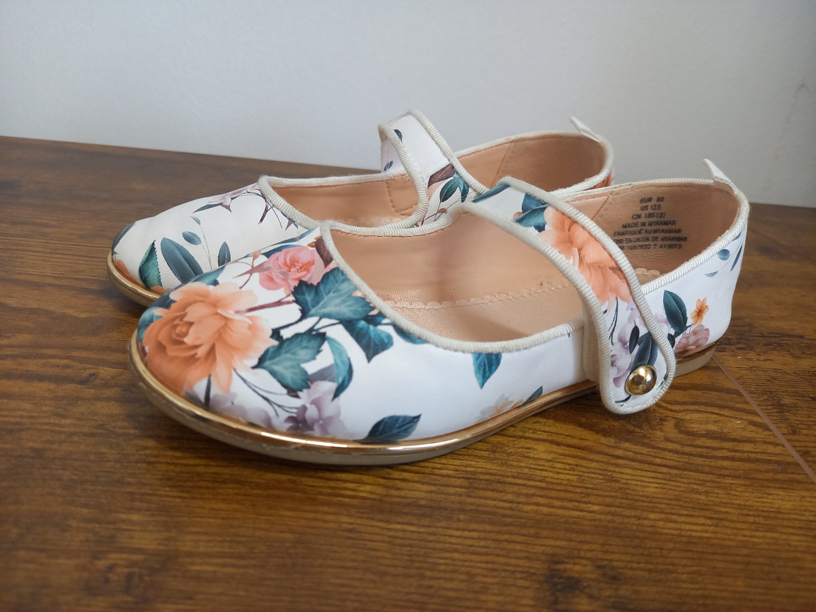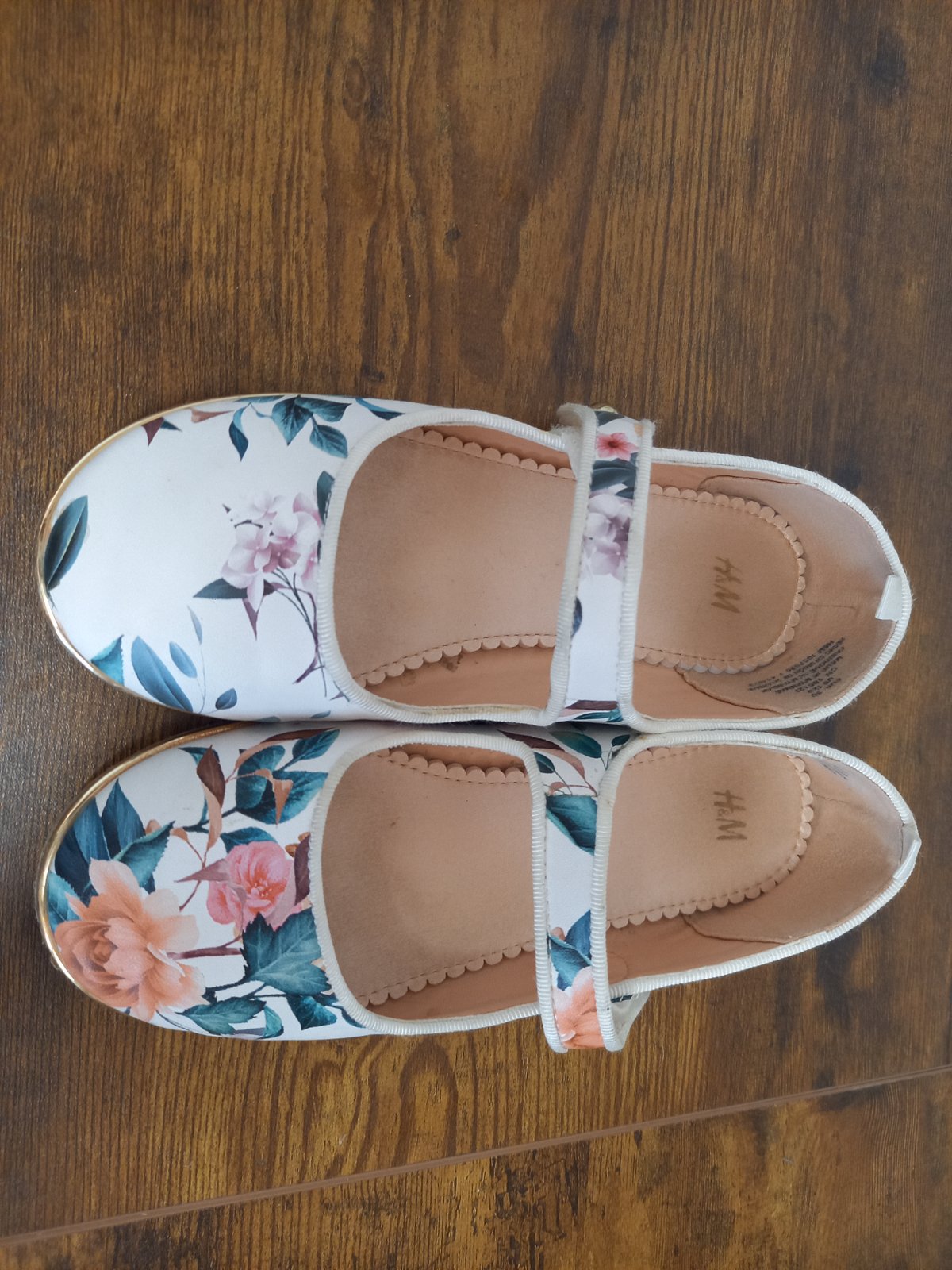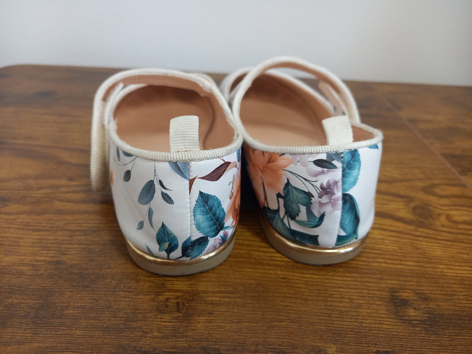 Predám balerinky po dcérke. Na pravej bledulinky fiacik ani mi to dobre nejde odfotit. Pri noseni nevidno. Vnútorná dĺžka nadoraz max 19 cm. Kľudne sa pýtajte. Rada odpoviem.