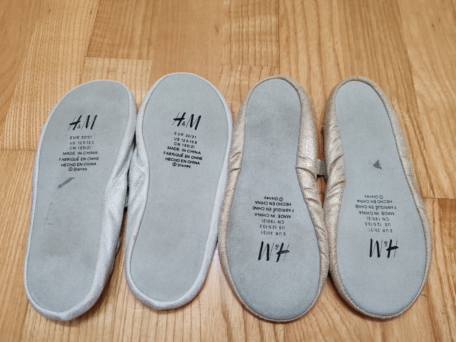 Zlaté a strieborné baletné cvičky, veľkosť 30/31, motív Disney a Frozen. Cena za kus.
