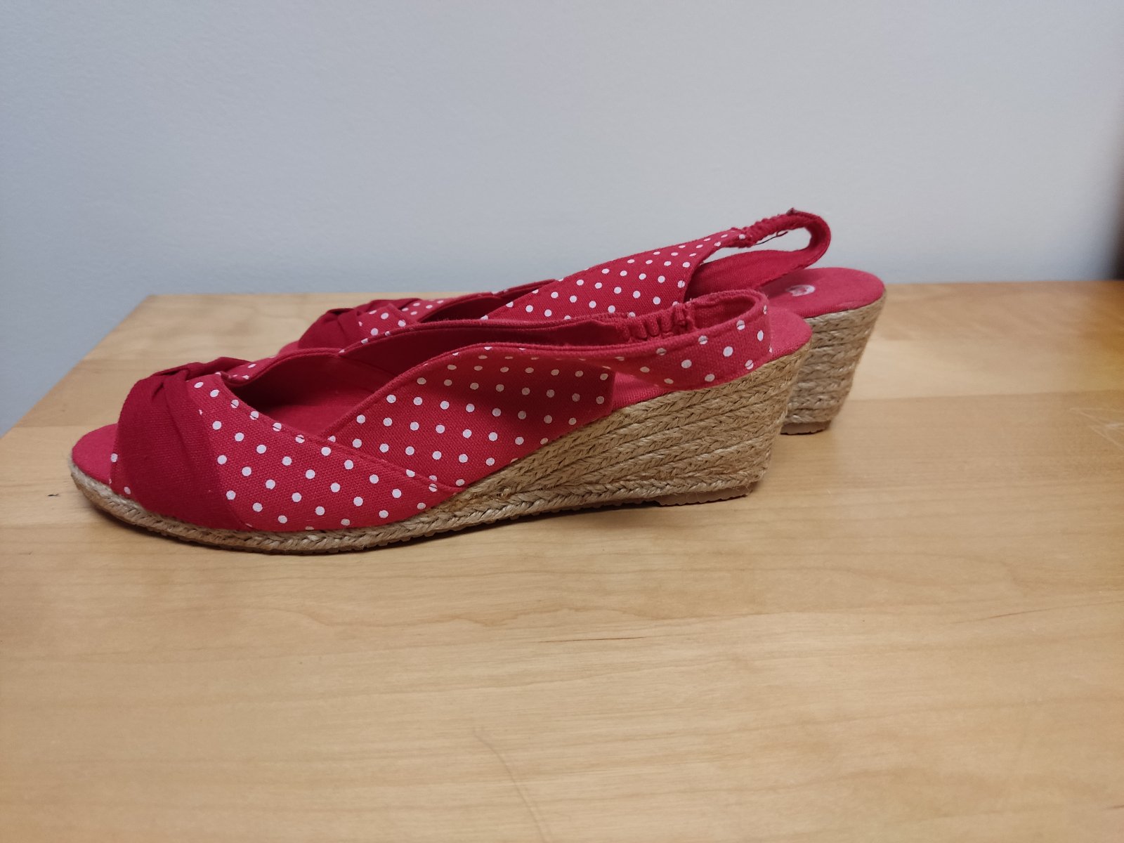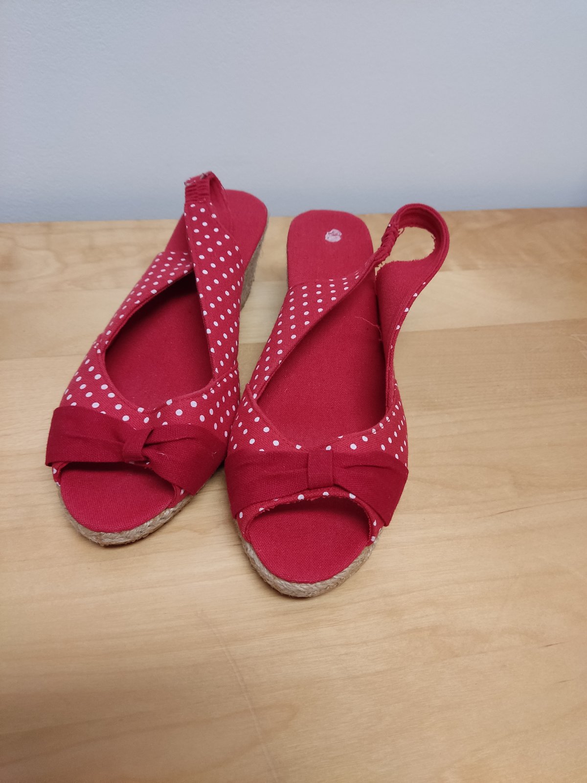 Pekne zachovalé sandálky.Malo nosené.Na jednej sandále je ten korok trošinku na niektorých miestach tmavší od druhej sandály.Nie je to pri nosení vidno iba pri dokladnejsom porovnavani,viď.foto