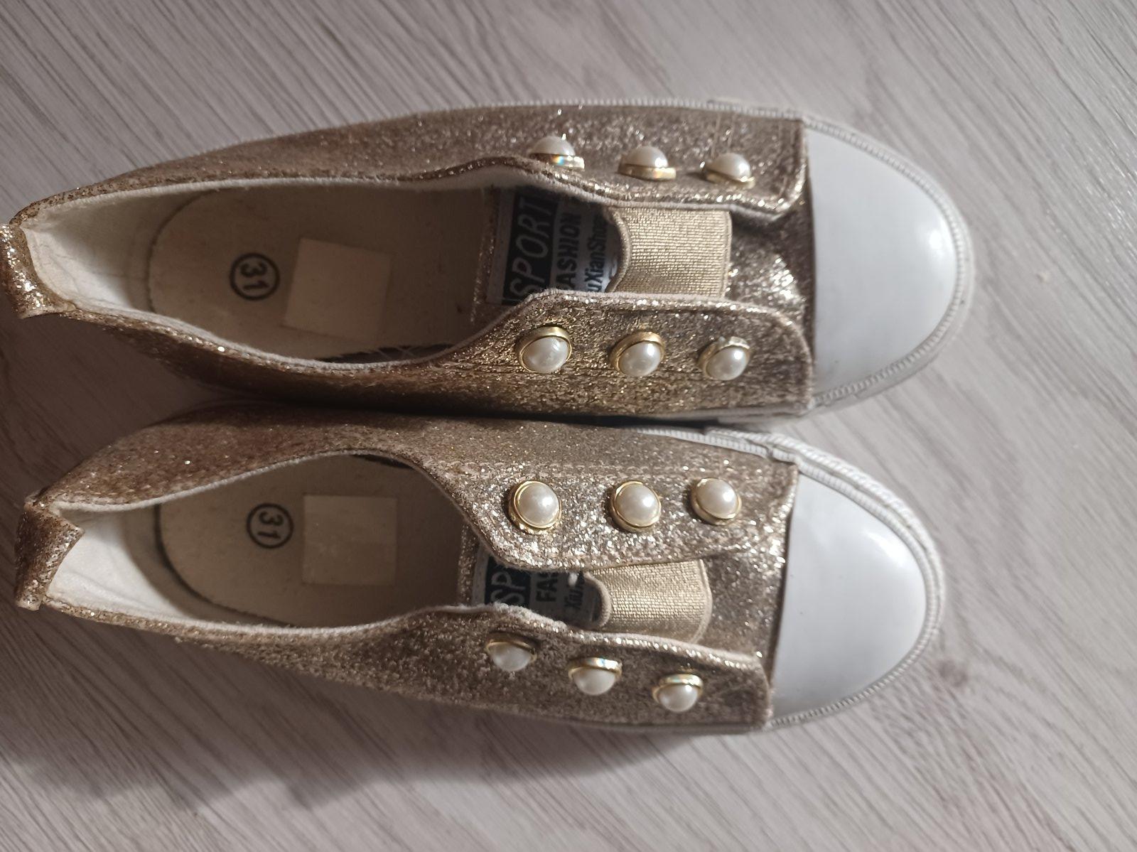 Zlaté trblietavé tenisky, VD cca 19 cm, málo nosené, bez poškodenia