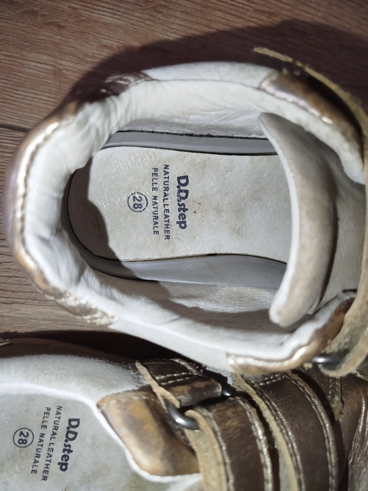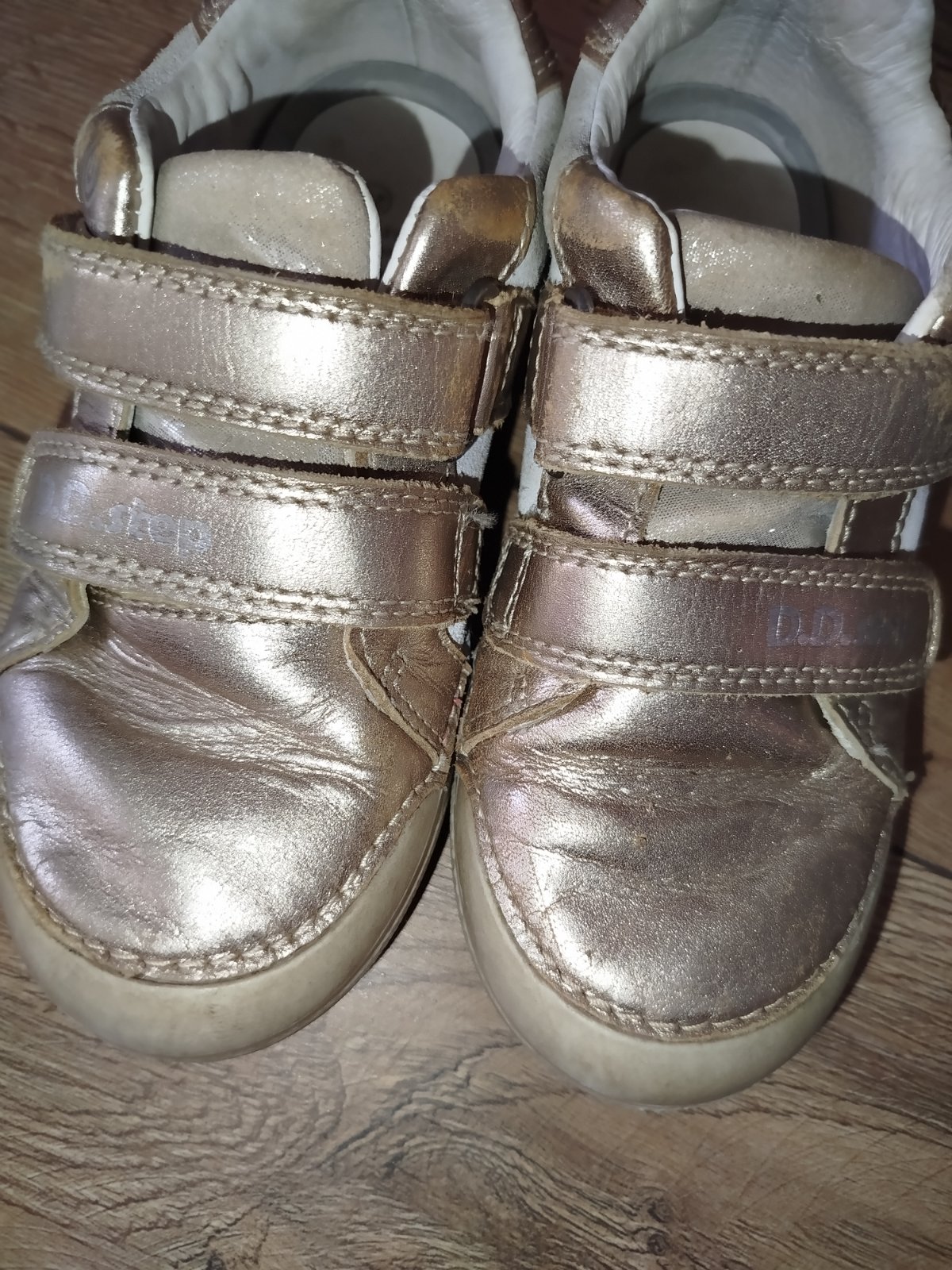 Nosené farba zlatá na boku dúha žiaľ už jedna topánočky nesvieti veľkosť 28 značka ddstep neprane len vyčistené kefkou jasné že škrabance a vysuchana farba ale to sa pri týchto topánkach stáva