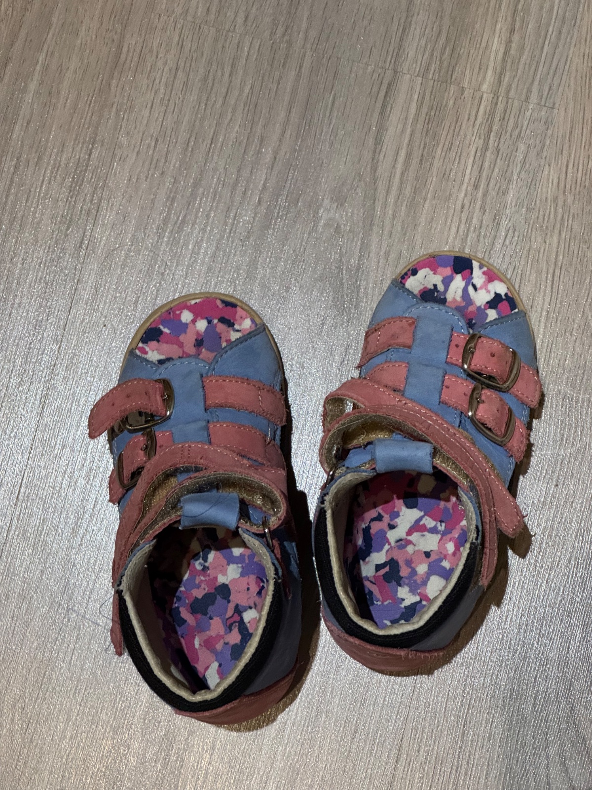 Len párkrát obuté ortopedické sandále na doma. Ideálne pri padnutej klenbe. Semišový materiál zvrchu, vytvarované vnútro, mäkké vzadu ako je päta, na tri lepačky - všetky plne funkčné. Dcérke rýchl...