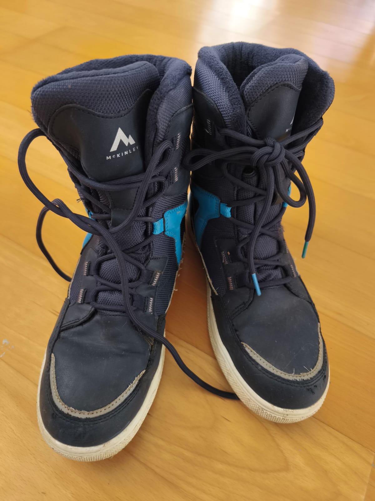 Vnútri ako nové, teplucke. Majú reflexné prvky,ľahko sa obúvajú, sú vodeodolné a nám je ľúto,že sú nám už malé. Snehu moc nebolo minulý rok,tak ich ani nevyužil poriadne. Pôvodná cena 79€. Predávam za symbolickú sumu.