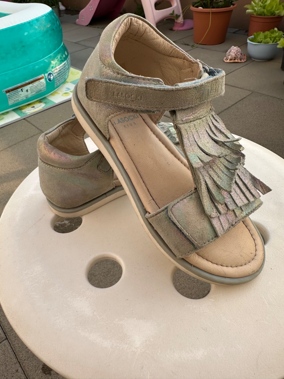 Sandalky lasocki s uzatvorenou pätou, čím pevné držia chodidlo. Suche zispy drzia vd 19.5cm. Určite ešte poslúžia