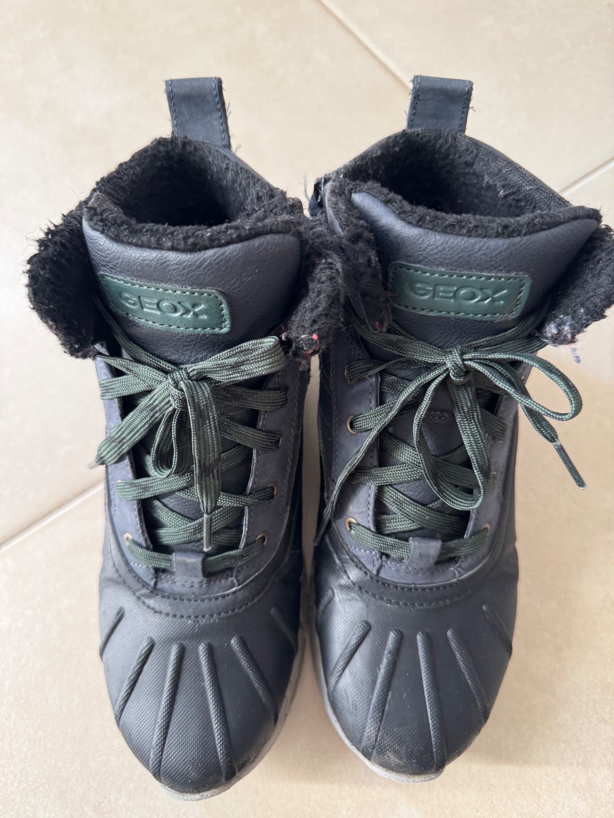 Posuniem Geox čižmy po synovi, majú známky nosenia, zohľadnené v cene. Inak stále funkčné, bez schodenej podrážky, nepremokavé.