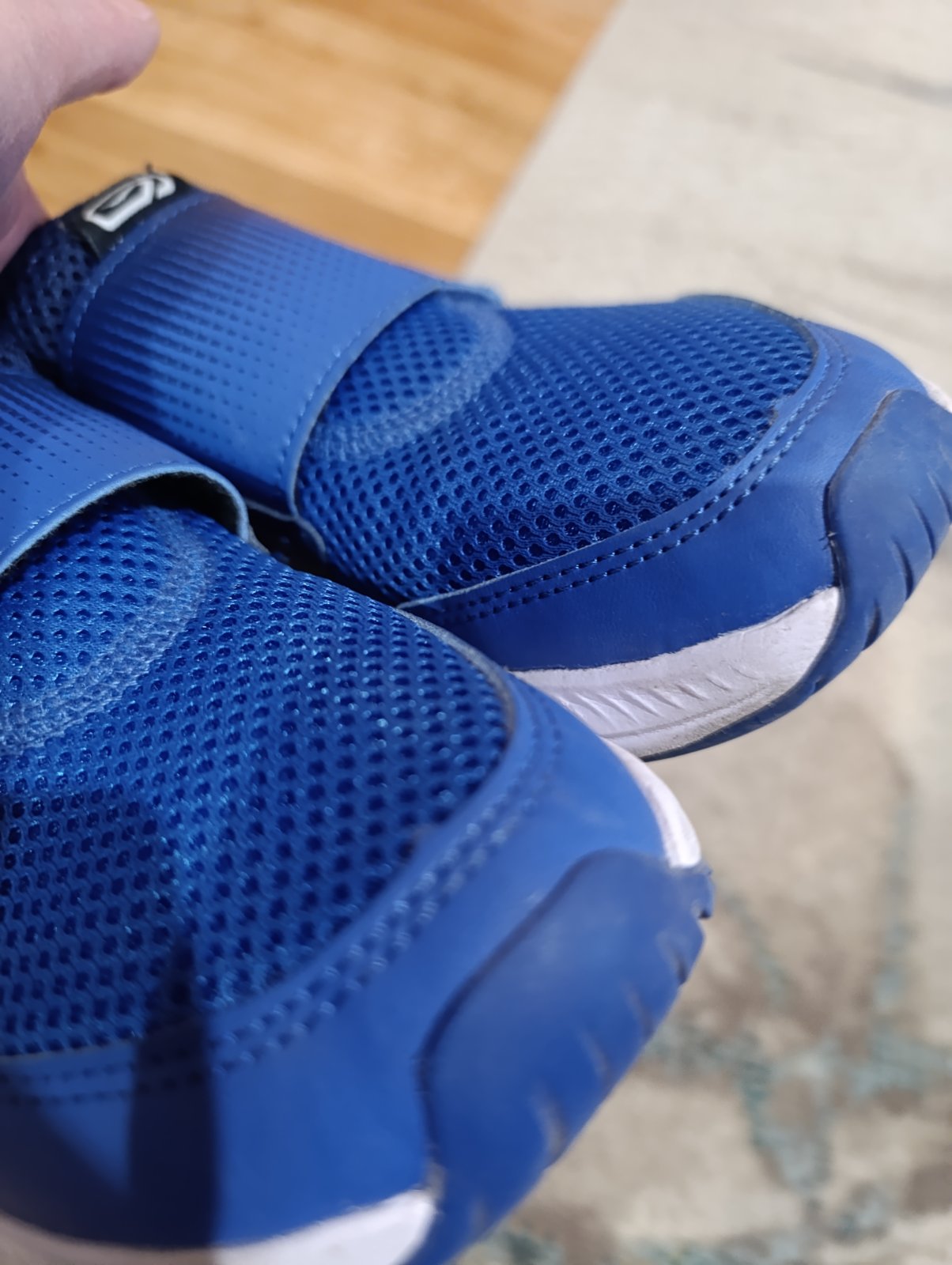 Nepoškodené, nové..boli nosene cca asi 2 týždne,syn nestihol nosiť,boli tesné.. posúvam ďalej.. Objednané z Decatlonu..Cena je už s poštovným...