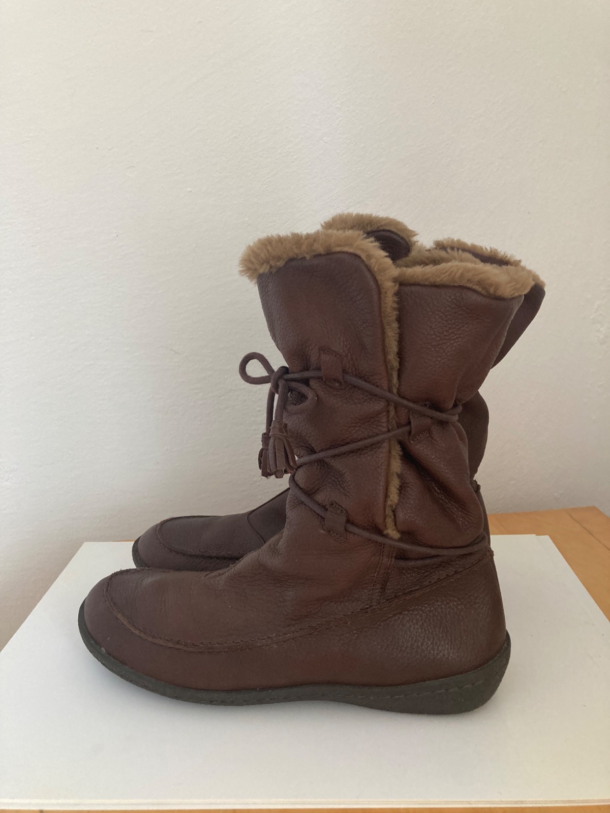 Pravá koža mäkučká, teplúčké a pohodlné, 1x obuté. Dĺžka vybratej vložky 26,3 cm. Kúpila som dcére, ale nepáčia sa jej.