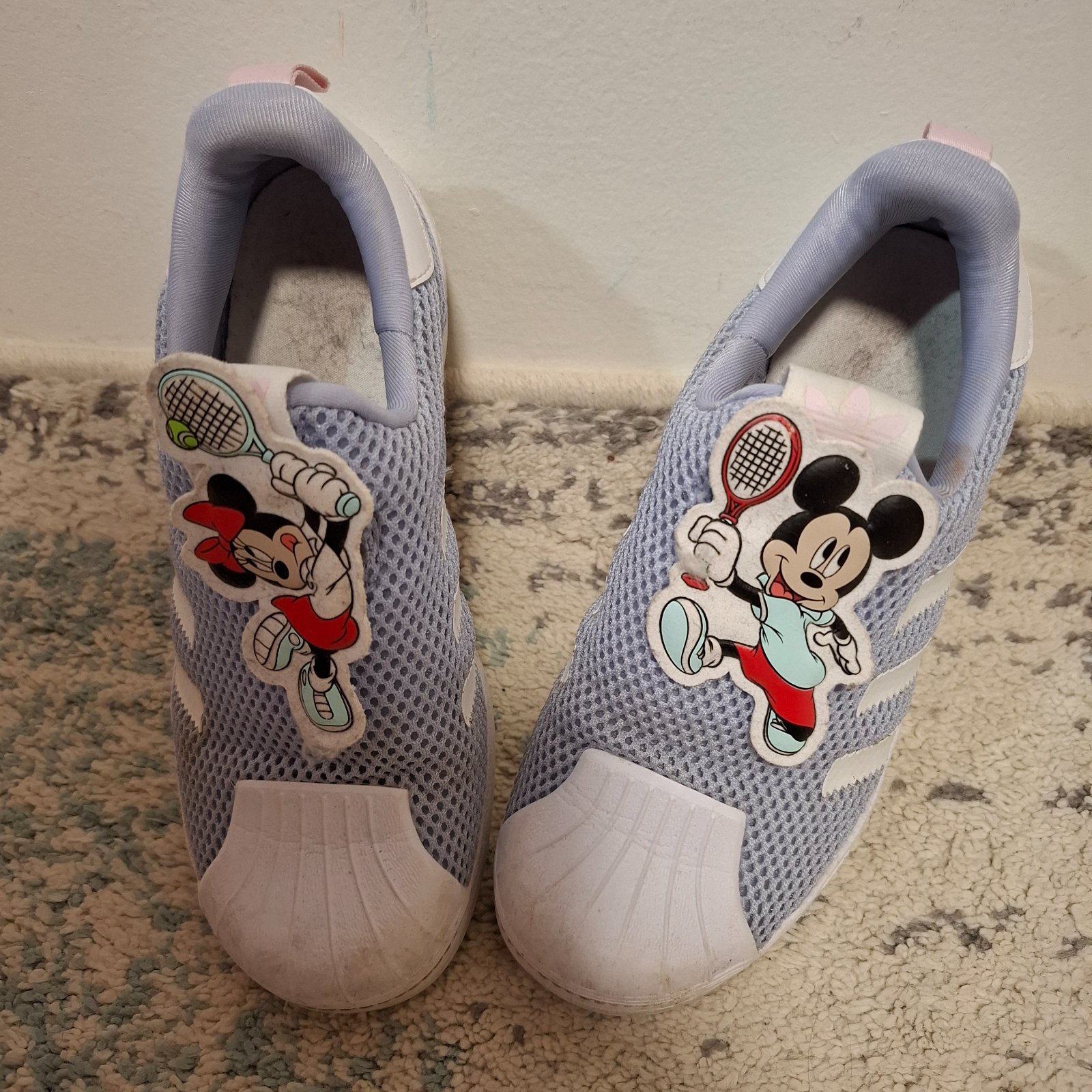 Tenisky len po mojej dcére, farba pastelová fialová. Majú malé chybičky krásy (viď foto) vidieť len z blízka. Zohľadnené v cene.