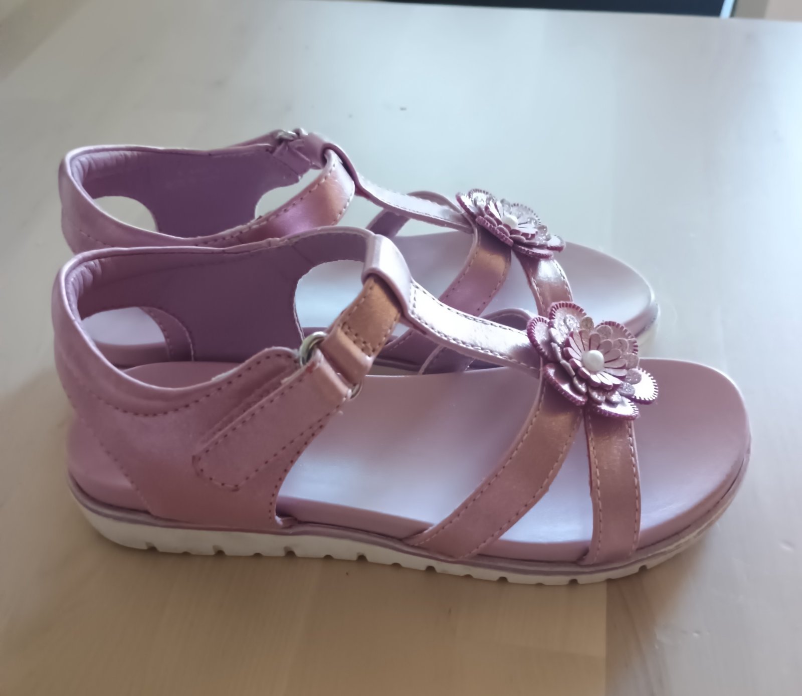 Veľmi pekné topánky, dcéra ich mala na nohách dva krát, dokopy cca 2 hodiny, už sú malé. Vpredu je jedna trochu šuchnutá.