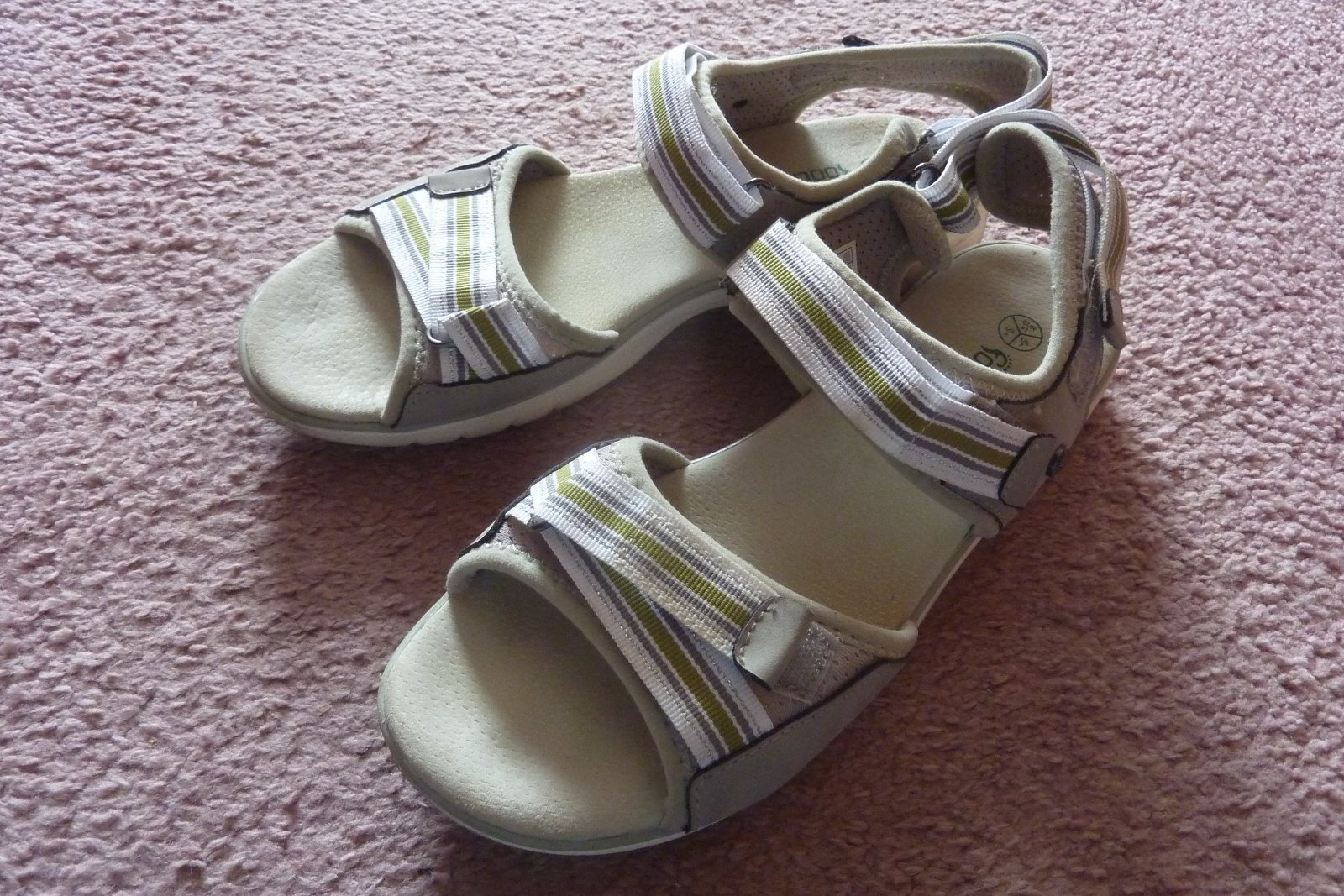 Dievčenské sandále, veľ. 41, 1x obuté, inak nenosené. Svetlosivo-zelenkavé. Pekné dievčenské sandále.Vnútri nie sú ani zašpinené, nemajú známky nosenia. Pozrite fotky.