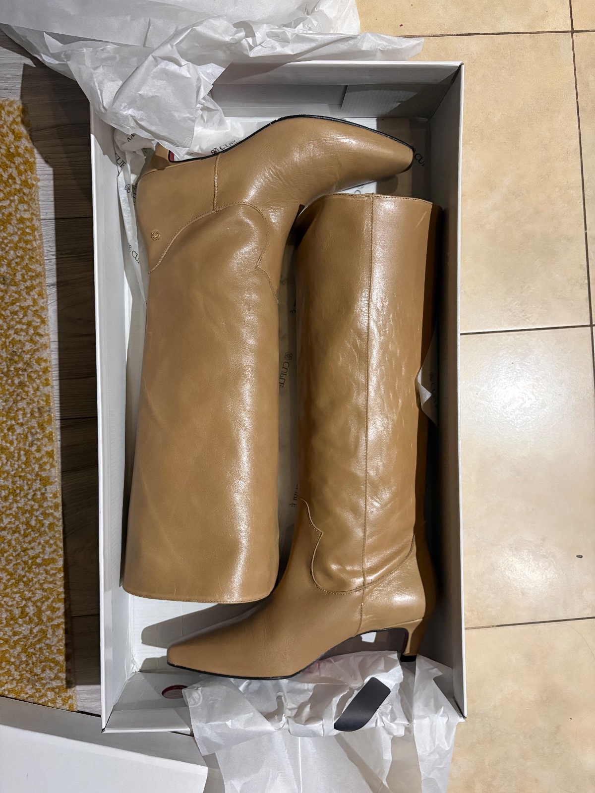 Predám nové trendové čižmy veľkosť 37 sedia na 36. Kožené krásne. Pôvodná cena 298 €