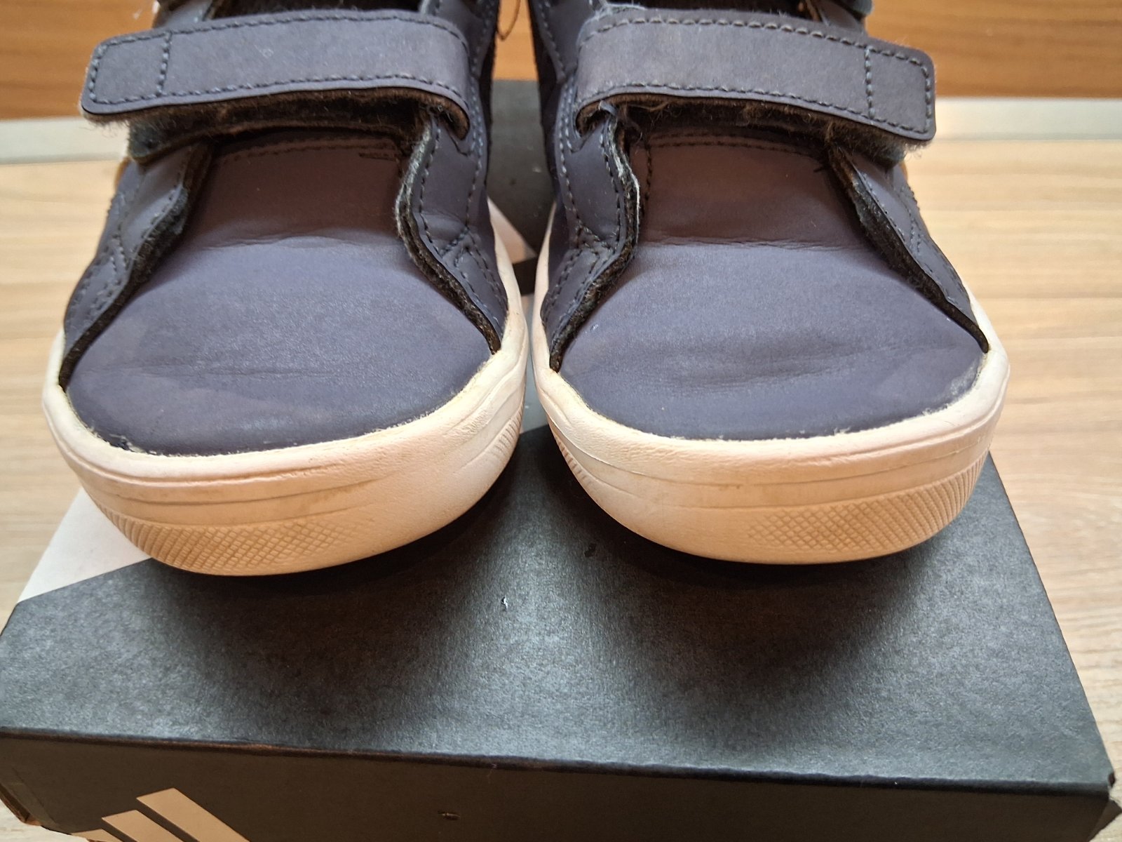 Predám modré Adidas tenisky, veľkosť uvedená 27. Majú ošúchané špice,viď. foto, lebo mládenec brzdil na odrážadle špičkami 🙈 nie sú ale deravé, je to len "kozmetická" vada.
