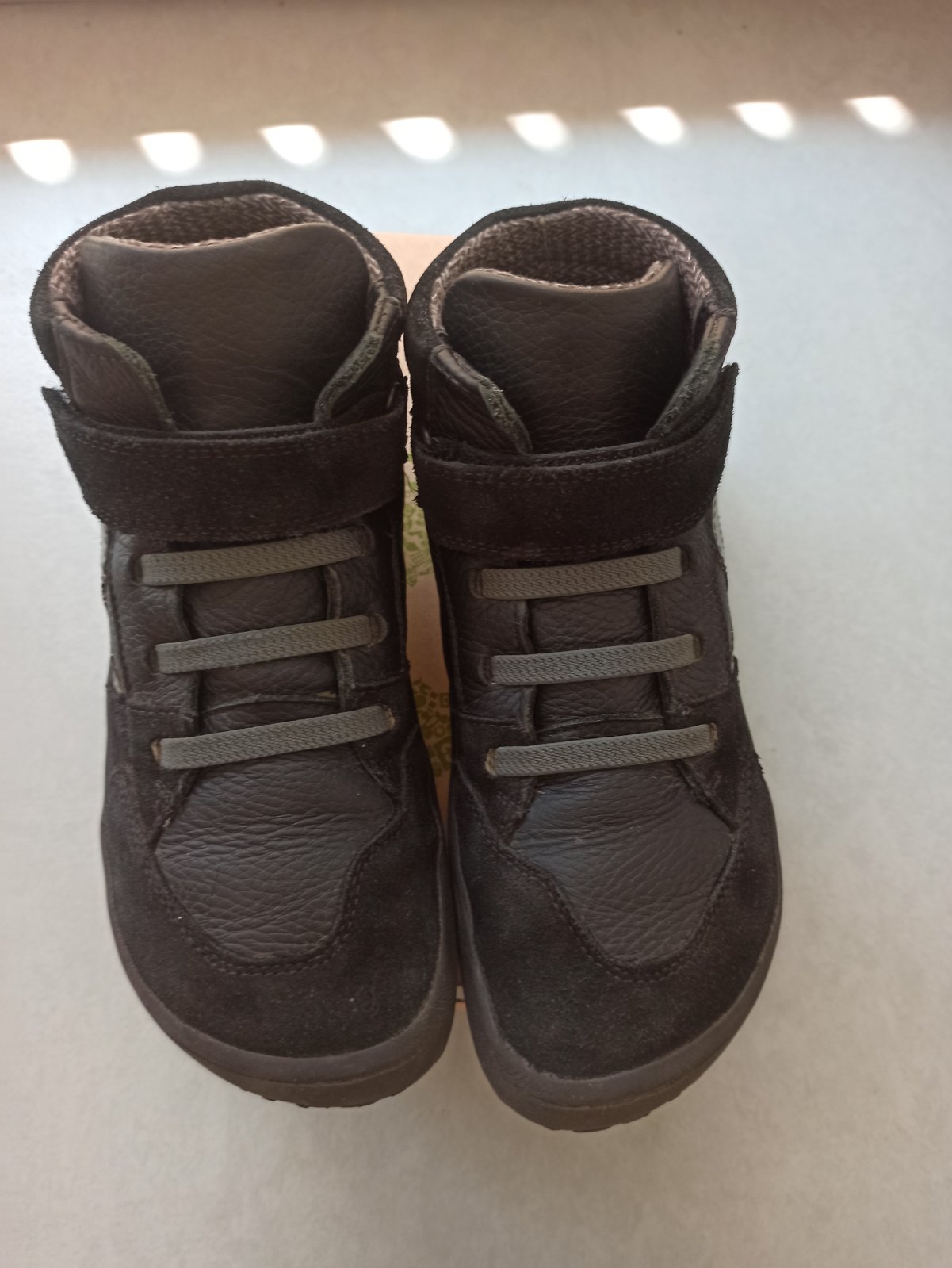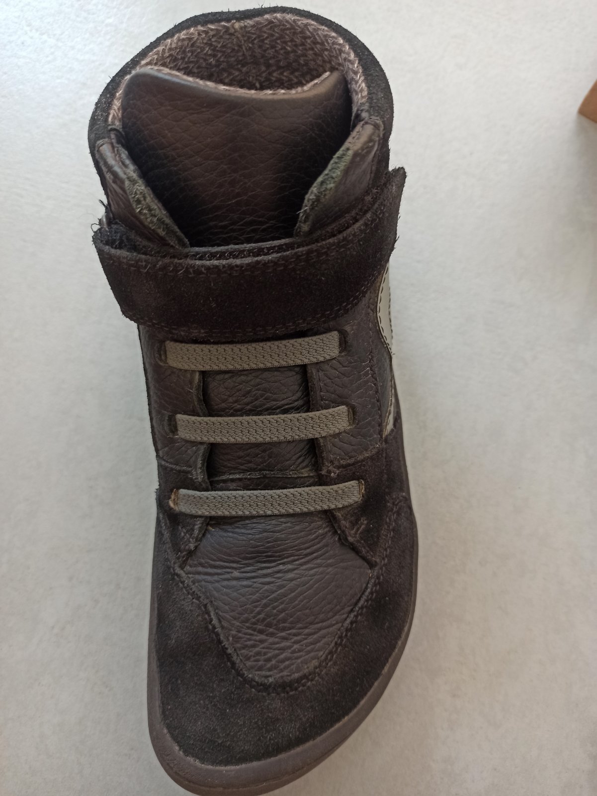 Vo veľmi dobrom nosenom stave, kupované nové a nosené jednu sezónu. Jediná mala chybička krásy na pravej nohe malé skrabnutie z vrchu je to vidieť, keď veľmi detailne prezerate. Viď foto.