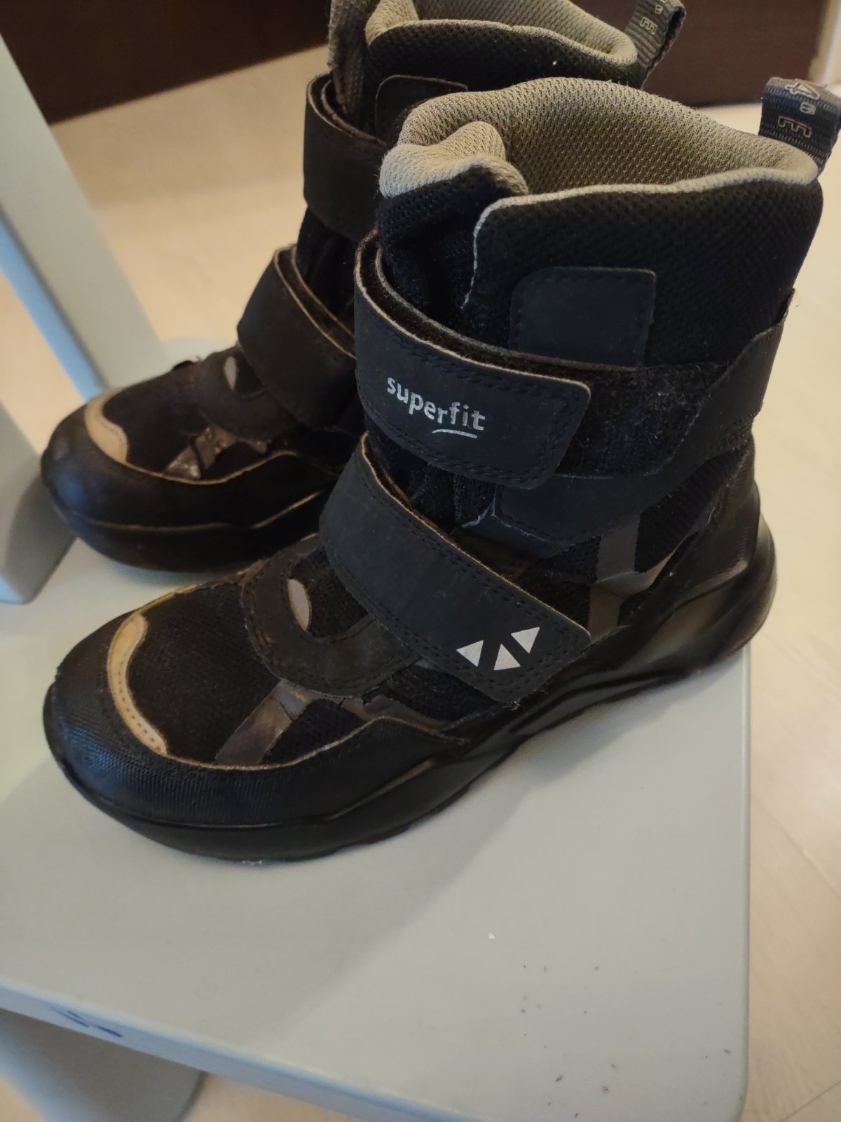 Predám čižmy Superfit, nezatekaju sú perfektné na zimu. Zvonku čo je ozdobný lem tak popraskal, čo nemá na funkčnosť vôbec žiadny vplyv a nie je to ani vidieť, keď si dá dieťatko nohavice na topánku. Vpredu sú mierne ošuchnuté. Všetko je viditeľné na fotkách. Veľkosť vnútornej vložky je 21cm.