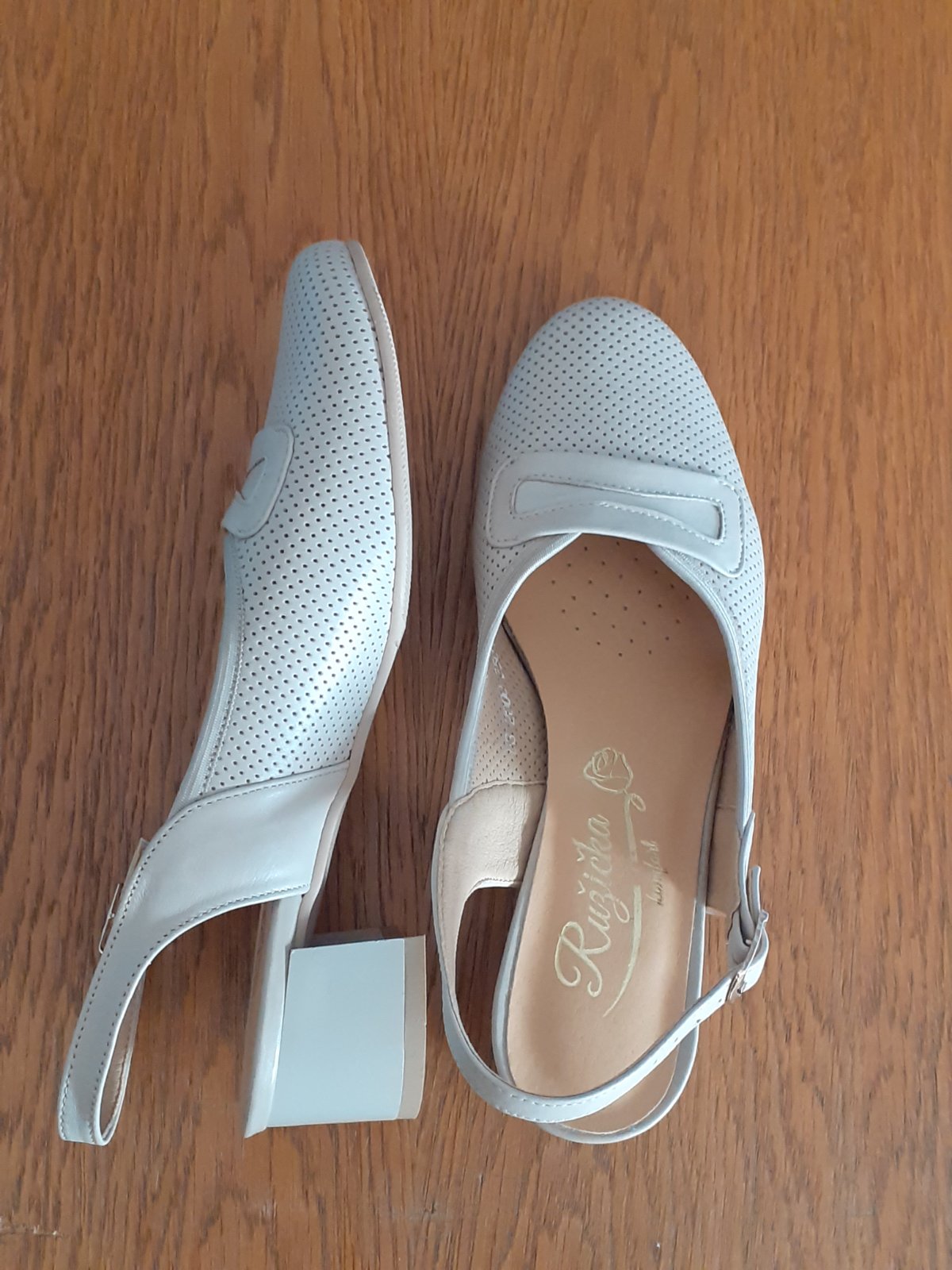 Predám tieto kožené béžové topánky bez päty značka Ružička komfort. Len vyskúšané, sú mi malé. Podpätok 4 cm. Kúpené 2 mesiace dozadu. Pôvodná cena bola 79 eur, teraz 55 plus pošta alebo aj dohodou.