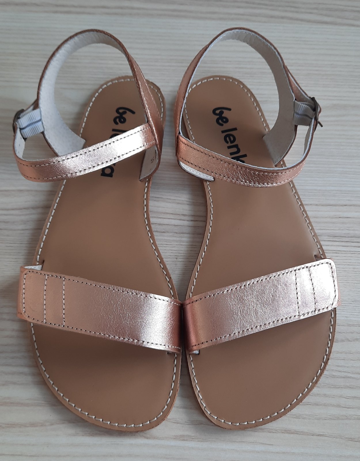 S Be Lenka Grace barefoot sandálkami v zlatoružovej farbe budete trendy pri každej príležitosti. Vďaka anatomickému tvaru sú presne prispôsobené ženskému chodidlu. Elegantné kožené remienky sú jednoducho nastaviteľné. Sandálky zaručujú pohodlie a prirodzený pohyb chodidla počas celodenného nosenia.