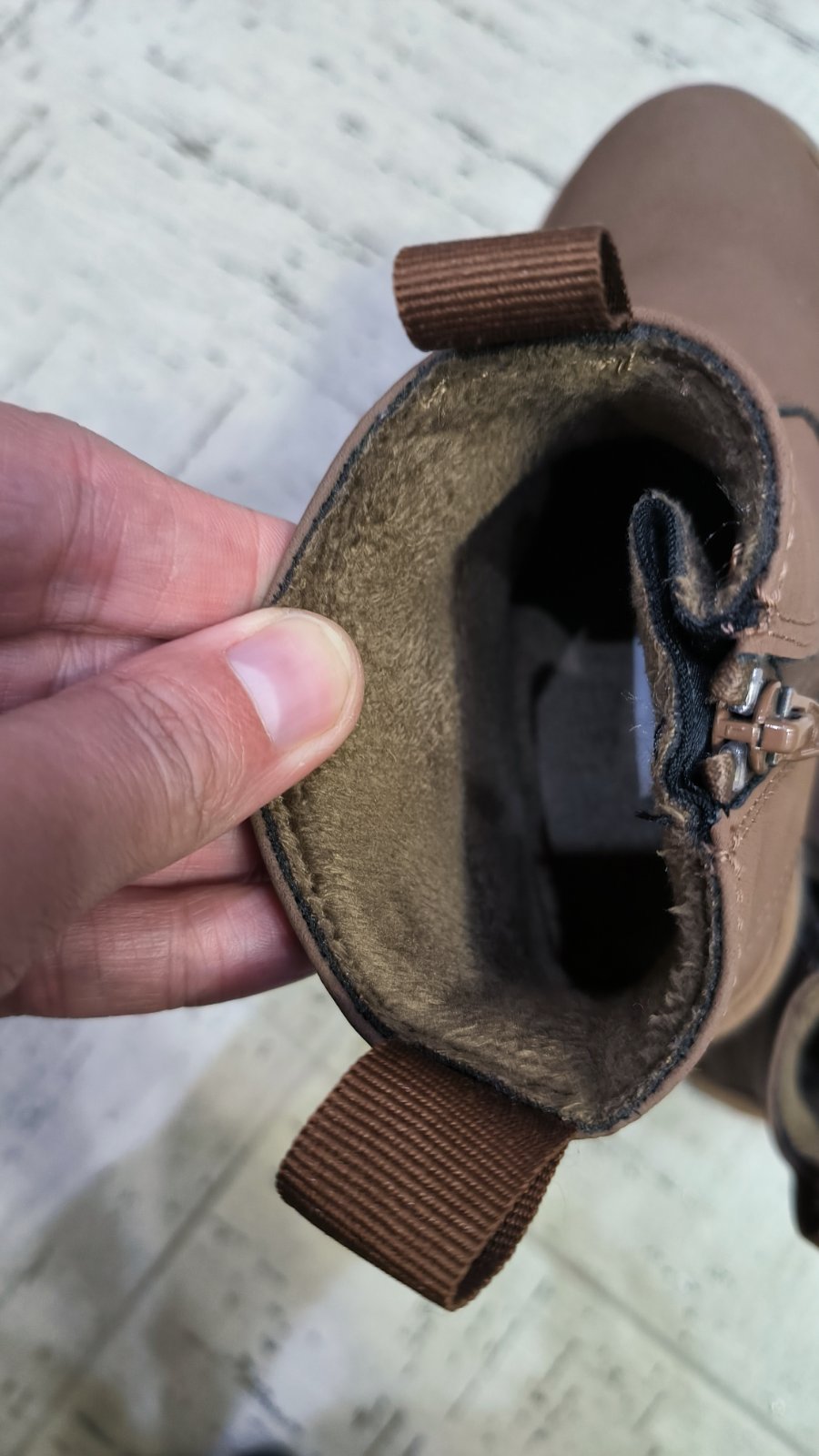 Úplne nové, s vysačkou. Avšak od "výroby" šuchnuté, a majú miernu prasklinu. Viď posledne dve foto..inak.krásne, vnutri zateplené, na zips...zabudla som na ne a nestihla som vrátit...Prasklinu som....