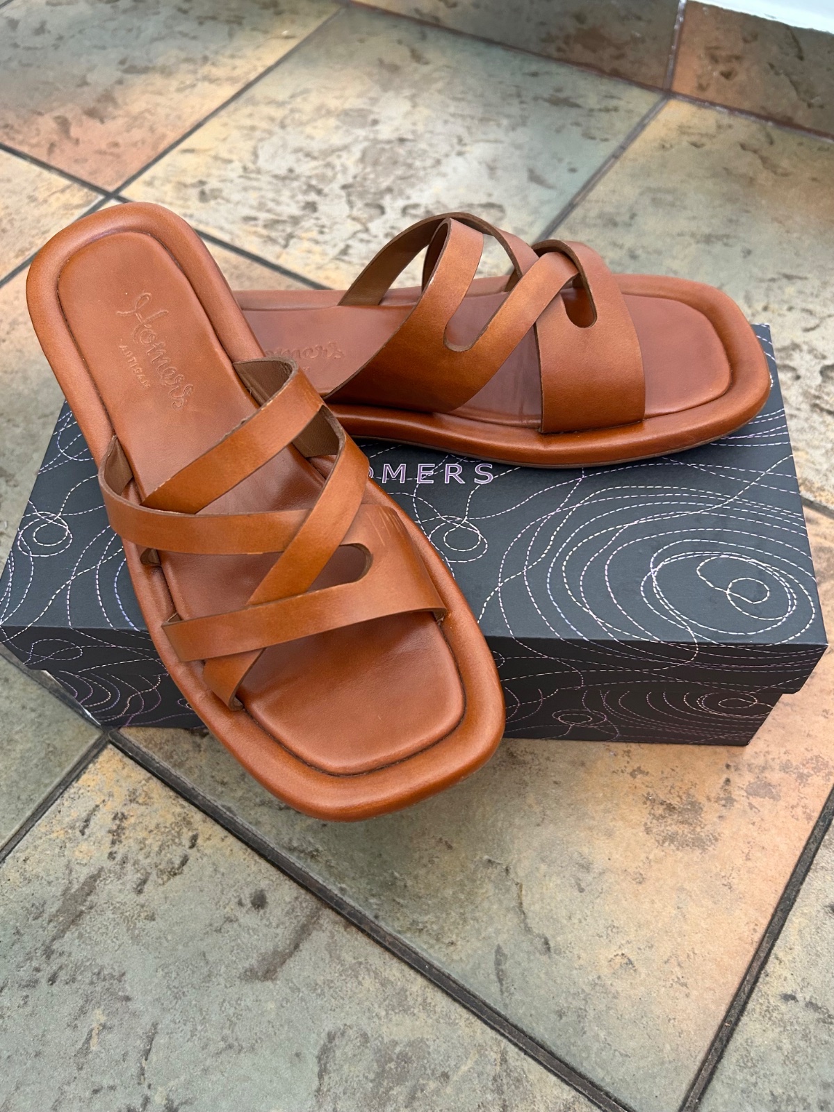 Predám 2x obuté, ako nové, luxusné šlapky španielskej rodinnej značky HOMERS Artisan. Vyrobené sú ručne z kvalitnej hnedej nadčasovej kože. Artisan obuv je výsledkom starostlivého procesu, kde každý krok – od strihu kože až po šitie – vykonáva skúsený remeselník. Takéto obuvnícke dielo je jedinečné, pretože každý pár má svoj vlastný charakter. Kto pozná túto značku z Menorky ocení jej kvalitu. Veľmi pohodlné, netlačia, prispôsobia sa na nohe, či je úzka, alebo širšia. Veľkosť 39, dĺžka koženej stielky 26 cm. Pôvodná cena bola 189 EUR. 100% stav. BA alebo poštou+poštovné.