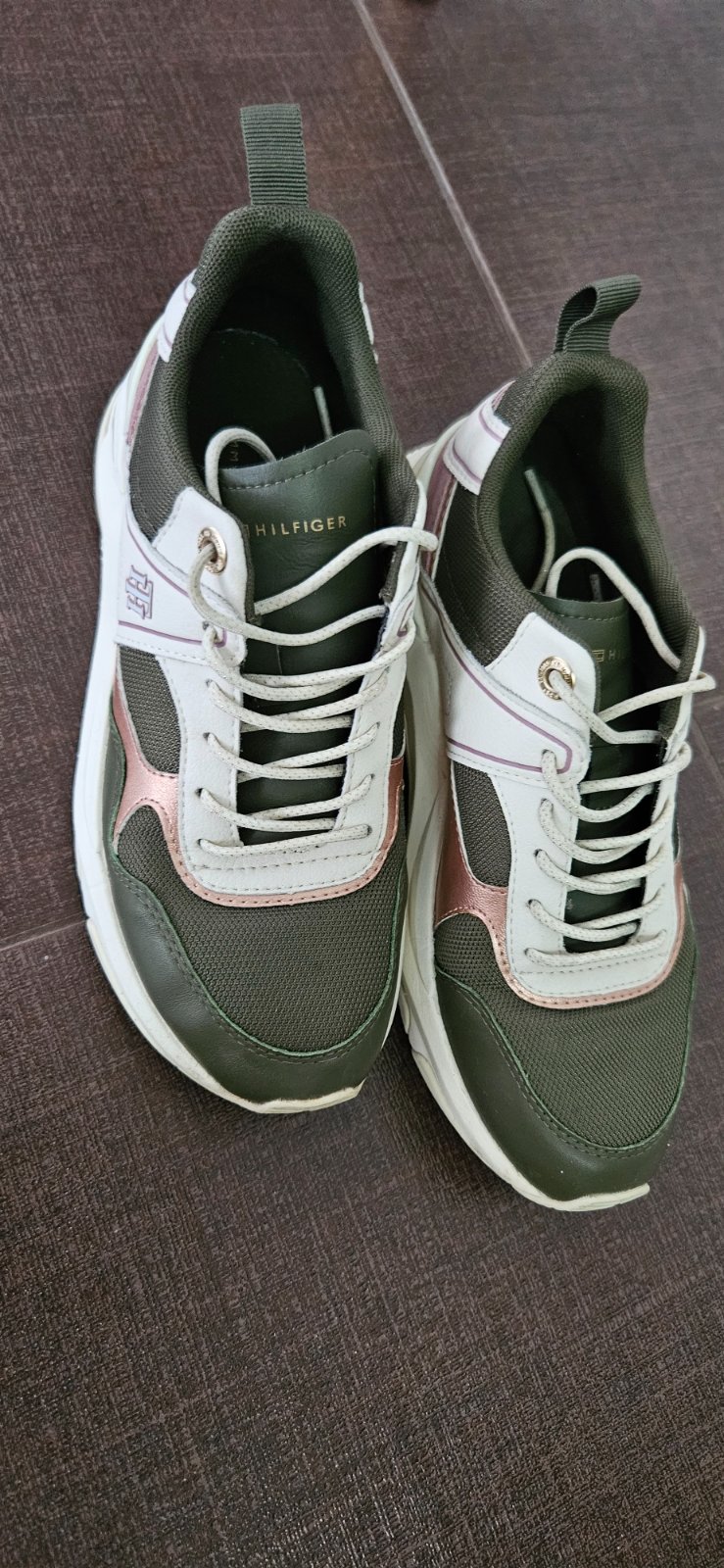 Predám 5 krát obuté tenisky na vyvýšenéj platforme Tommy Hilfilger,vo veľkosti 37. Cena 40€.