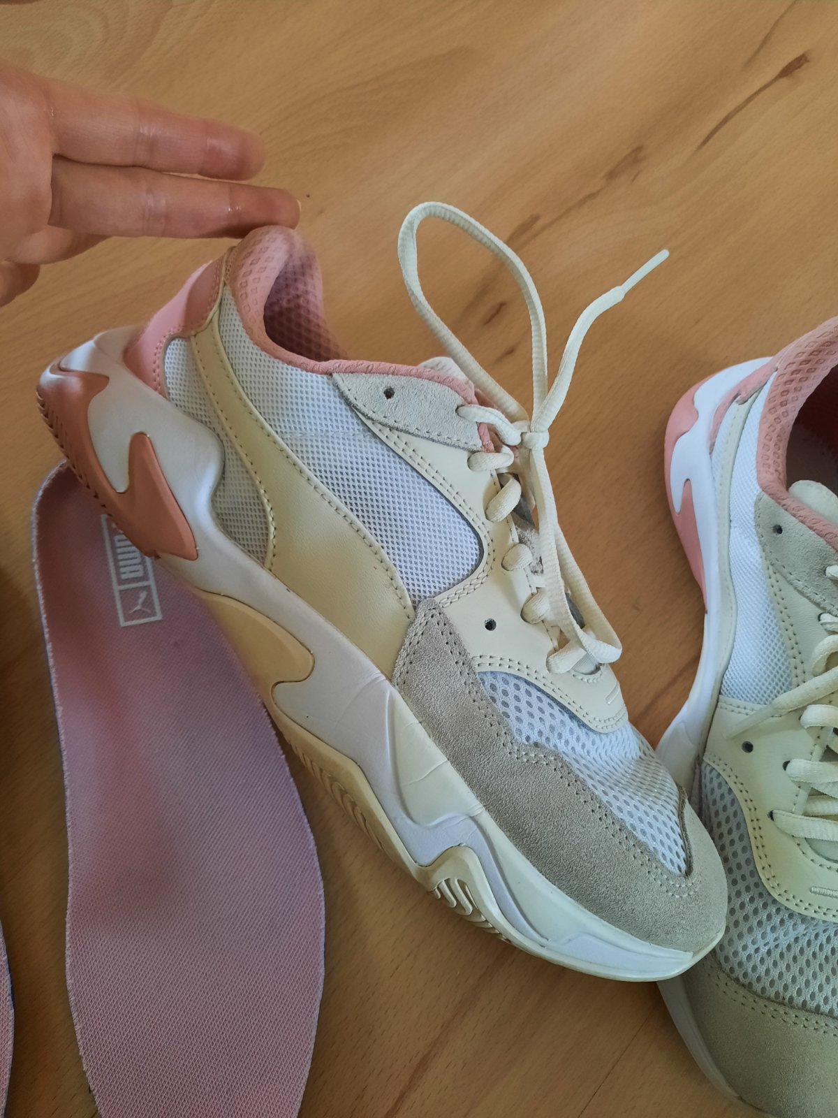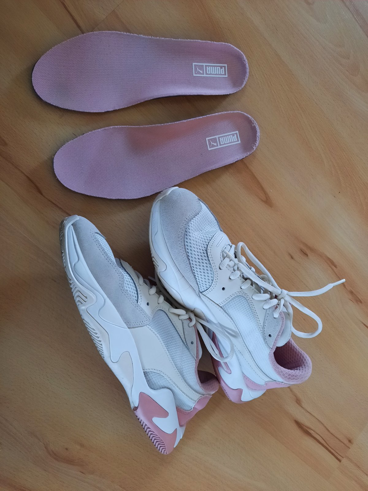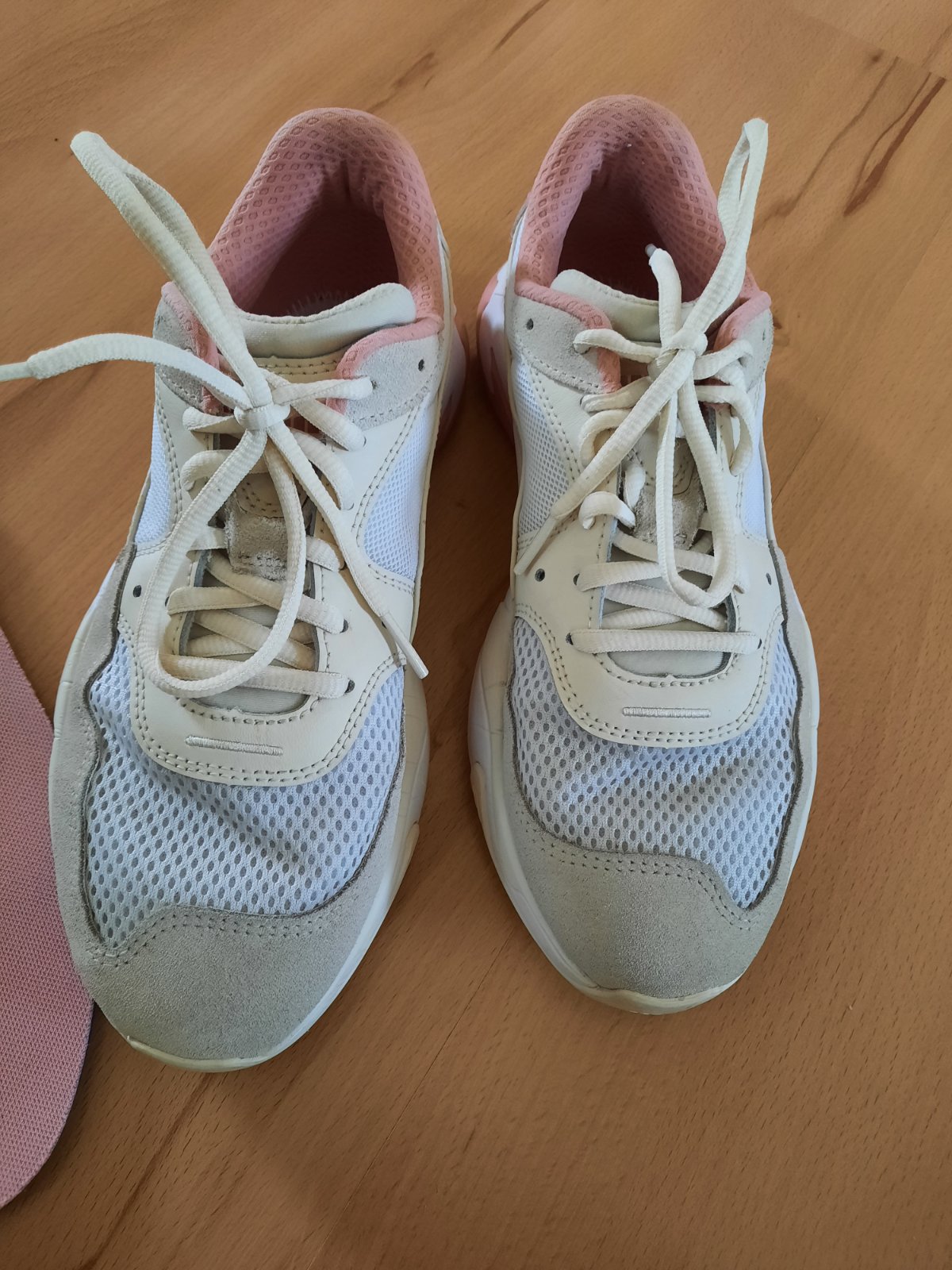 Párkrát obuté,super stav.Objednané ako veľkosť 39,ale sú menšie,namerala som 24,5 cm po zadný vyvýšený okraj vložky.Samotné vložky čisté aj vnútro pod nimi.Nádherné jemné farby.Ak máte otázky,kľudne píšte.