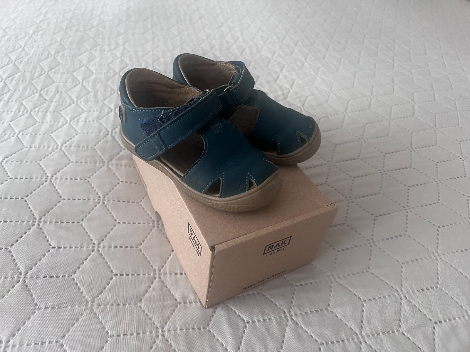 Kožené sandálky Rak veľkosť 21 - 13,4cm spodok od lepidla, trochu šuchnuté viď foto, na dvor určite dobre poslúžia, cena zodpovedá stavu