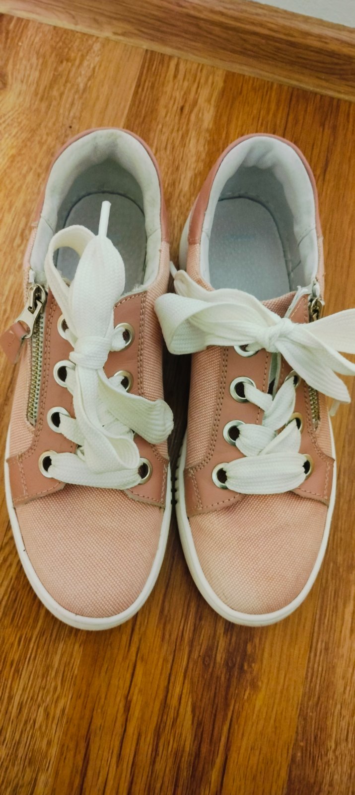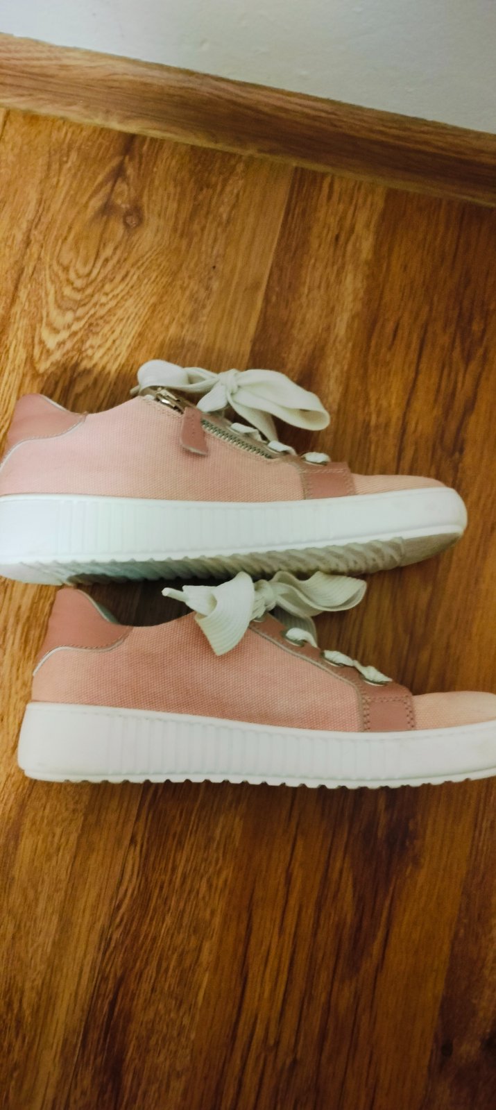 Ponúkam veľmi pekne botasky, pláteno- kožené. Dnu koža , aj zvonku . Obuté max.5x Zn. Baťa. Farba púdrova , staroružová, po bokoch funkčný zips