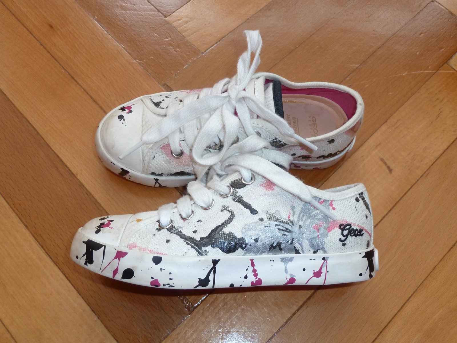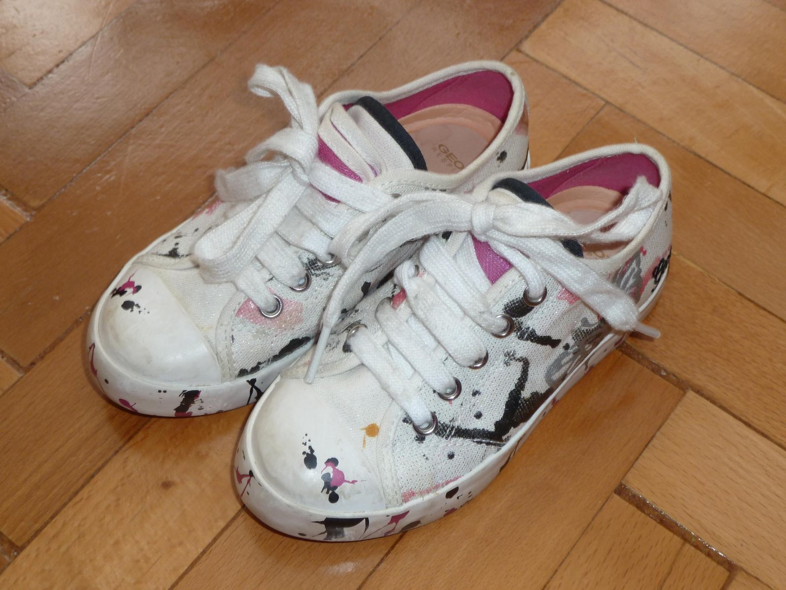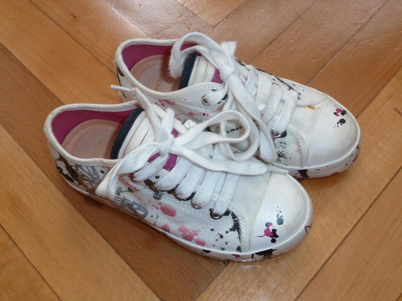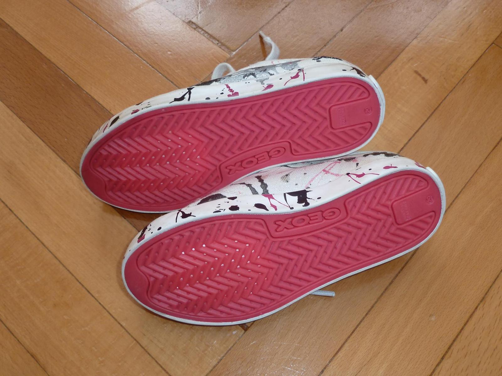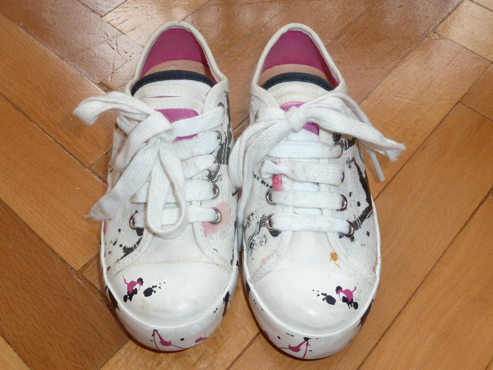 Velmi malo nosene frkane tenisky so snurovnim, vnutorna kozena vyberatelna vlozka je priedusna a antibakterialna, podrazka neznicena, top stav. Vnutorna dlzka odfotena, cca 17,5cm.